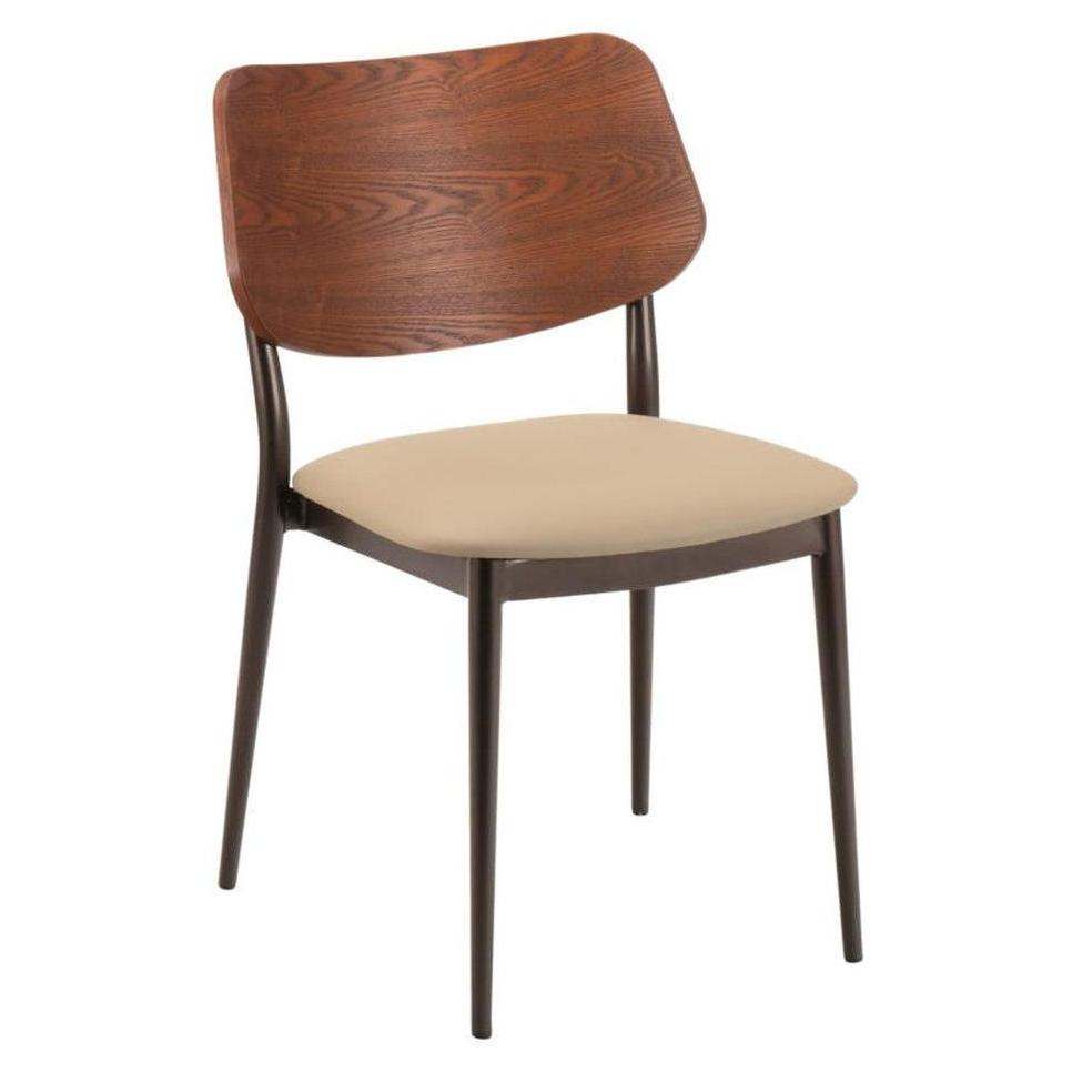 Be the first to review “Modern stackable metal chair with padded seat and brown frame”