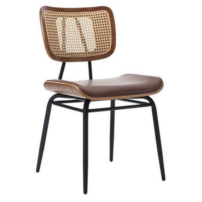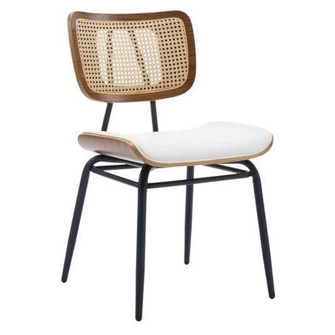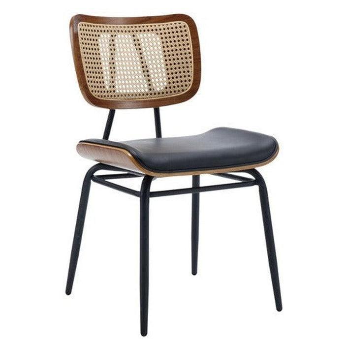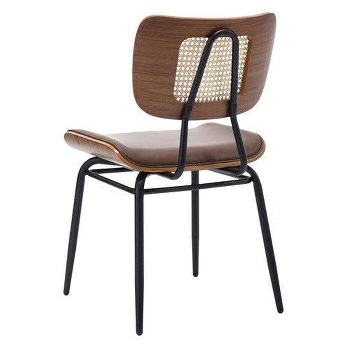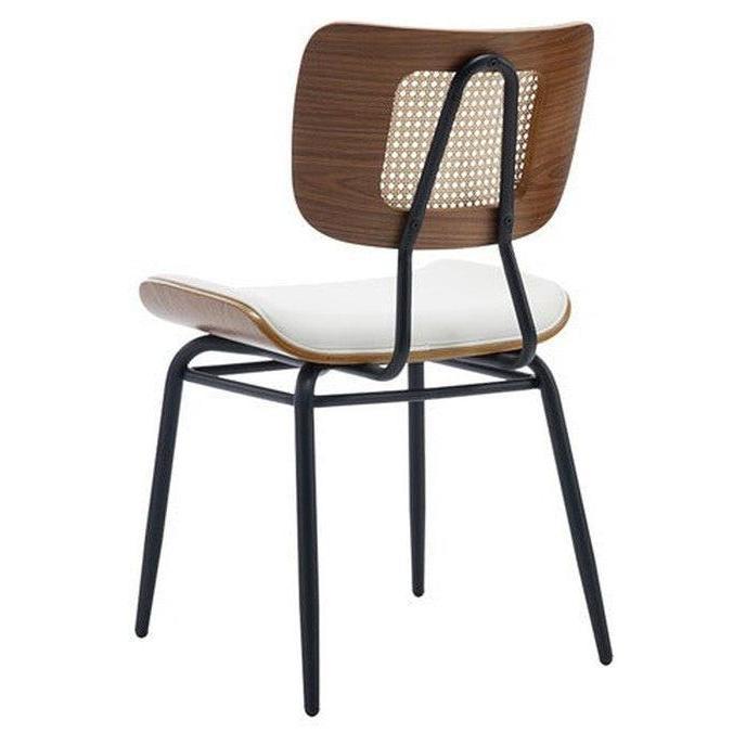 Modern upholstered chair with vinyl seat and synthetic woven rattan backrest