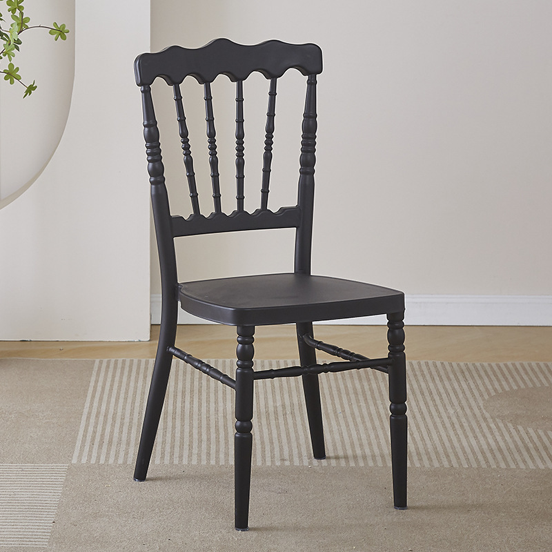 The resin Napoleon chair is an elegant piece of furniture suitable for various environments such as restaurants, hotels, and offices.