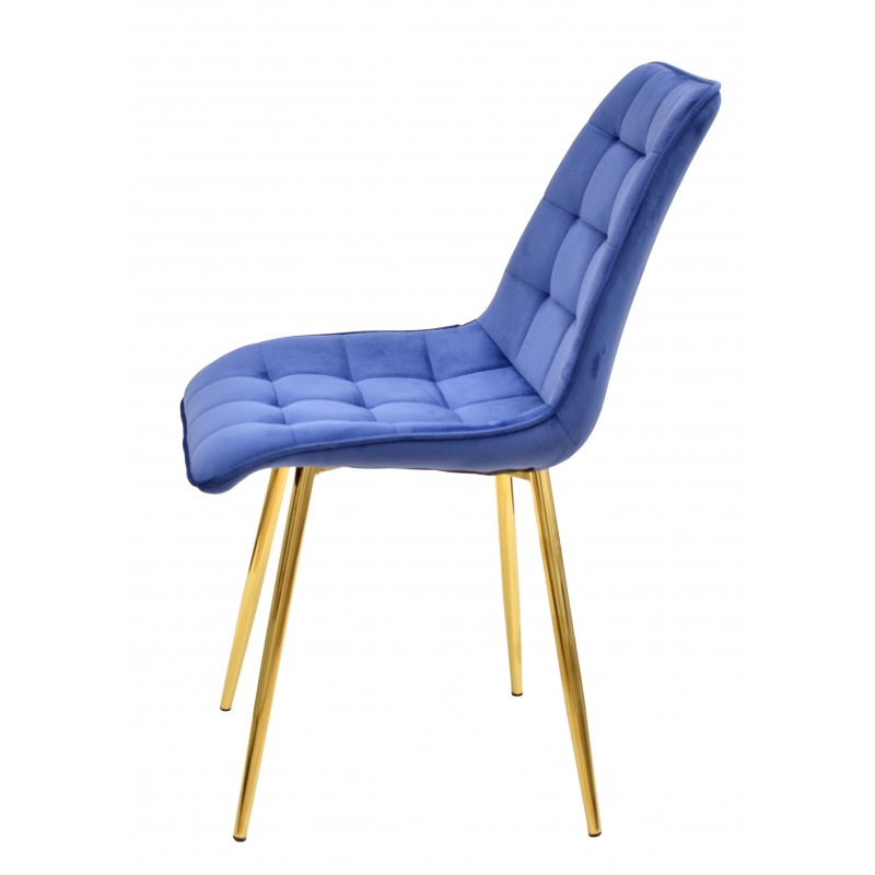 The blue velvet upholstery stands out for its silky texture and wear resistance, ensuring long-lasting durability. The golden finish of the metal structure is carefully done to offer a noble and shiny appearance. Every detail is crafted to combine aesthetics and sturdiness, ensuring a chair that is both elegant and reliable.