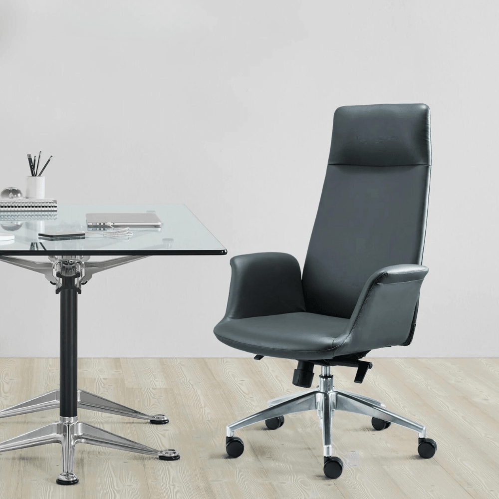 This chair is designed for offices, coworking spaces, and meeting rooms. Its elegant silhouette and high back make it a perfect choice for professionals seeking optimal support. Suitable for long hours of work, it promotes correct posture while adding a touch of sophistication to your space.