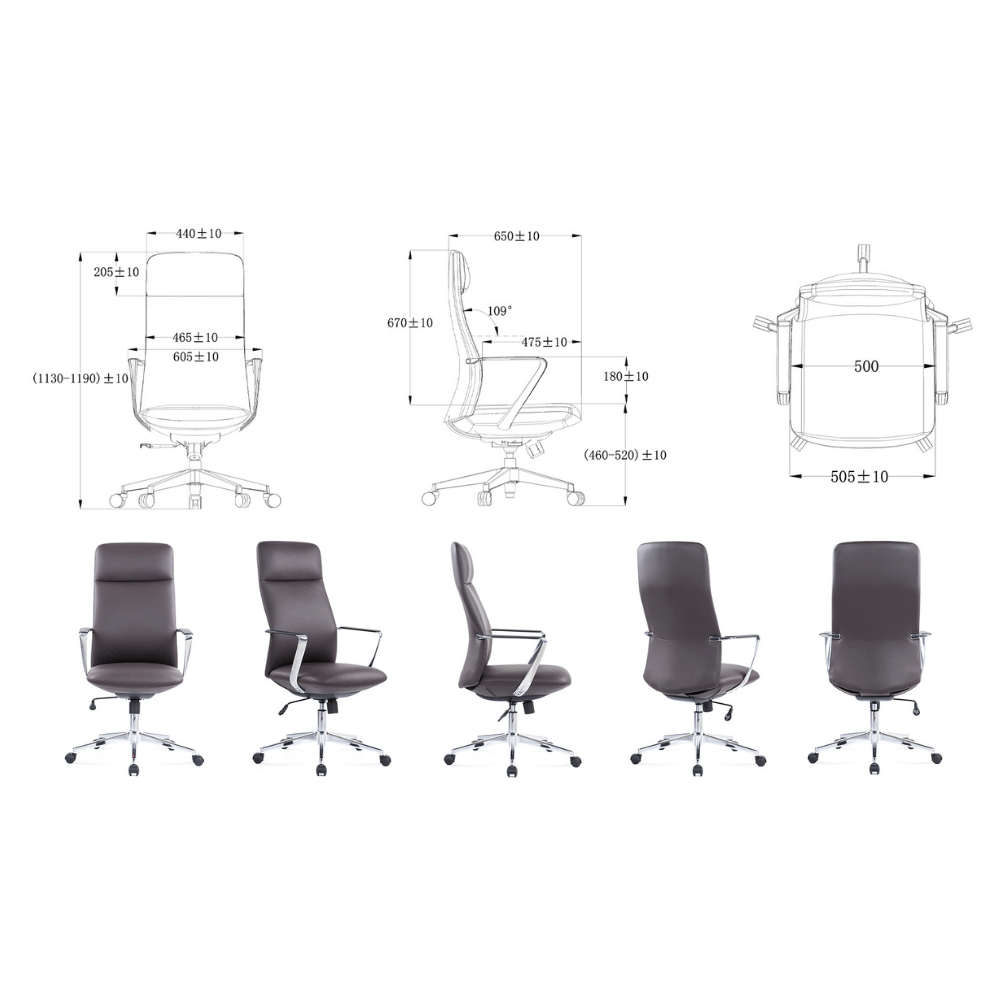 Office chair Volos in leather – high backrest