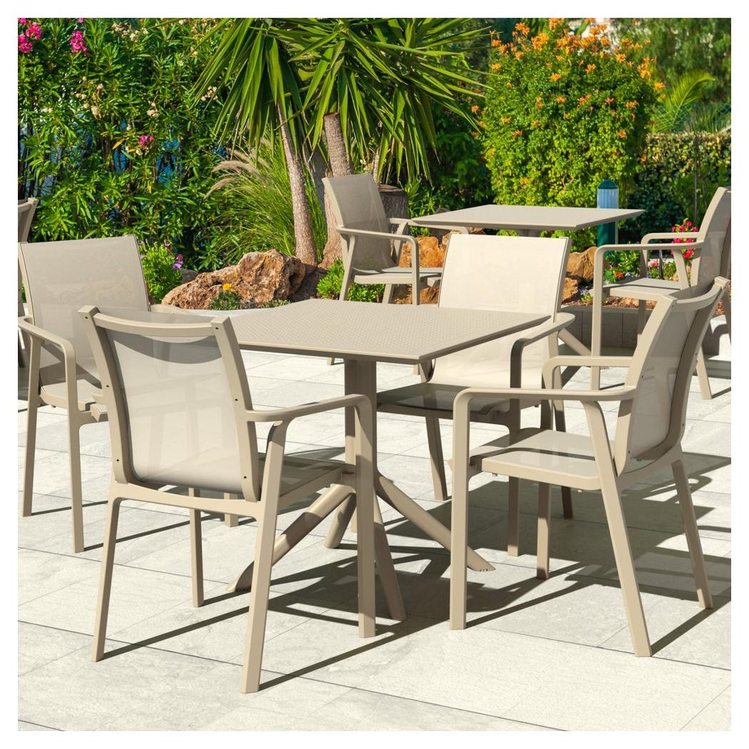This armchair is designed for outdoor use, combining comfort and functionality,