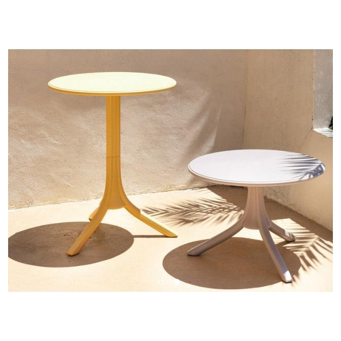 This versatile table is designed to adapt to various environments, offering a practical solution for meals or moments of relaxation.