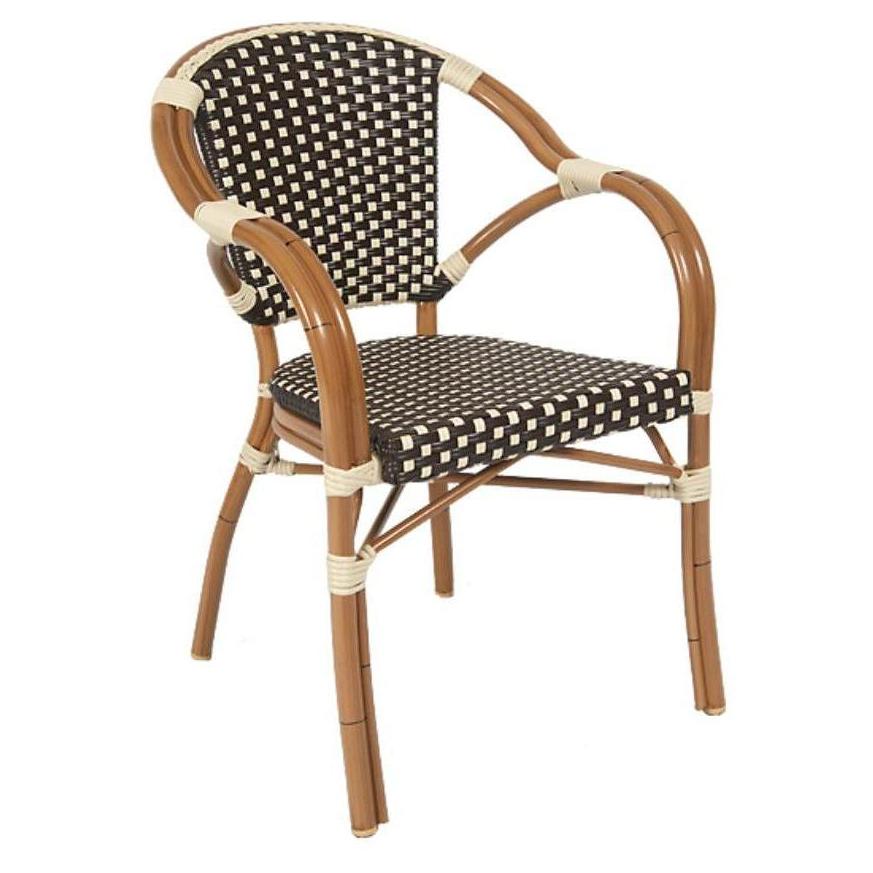 Outdoor aluminum armchair with poly-woven seat and backrest