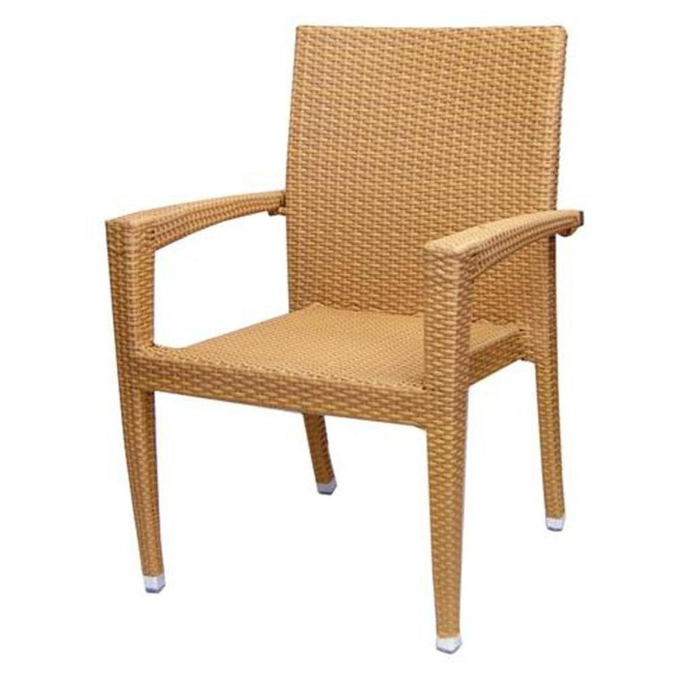 This armchair is designed for outdoor use, ideal for dining and relaxation spaces,