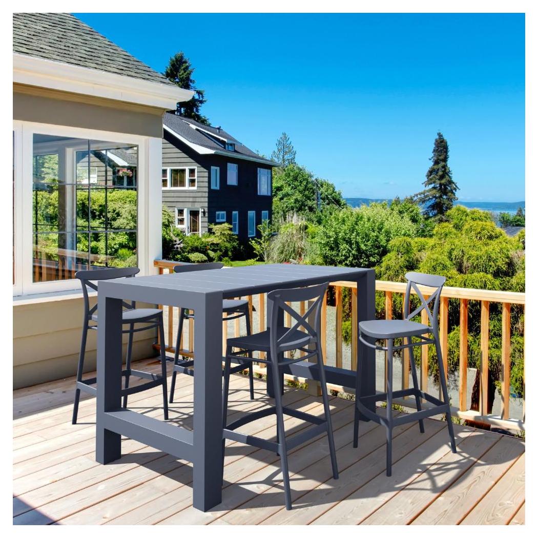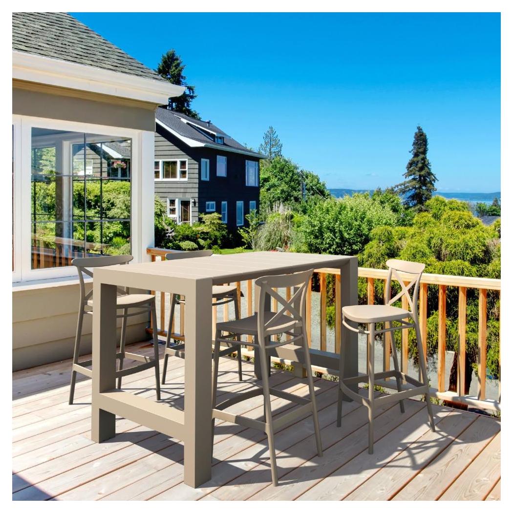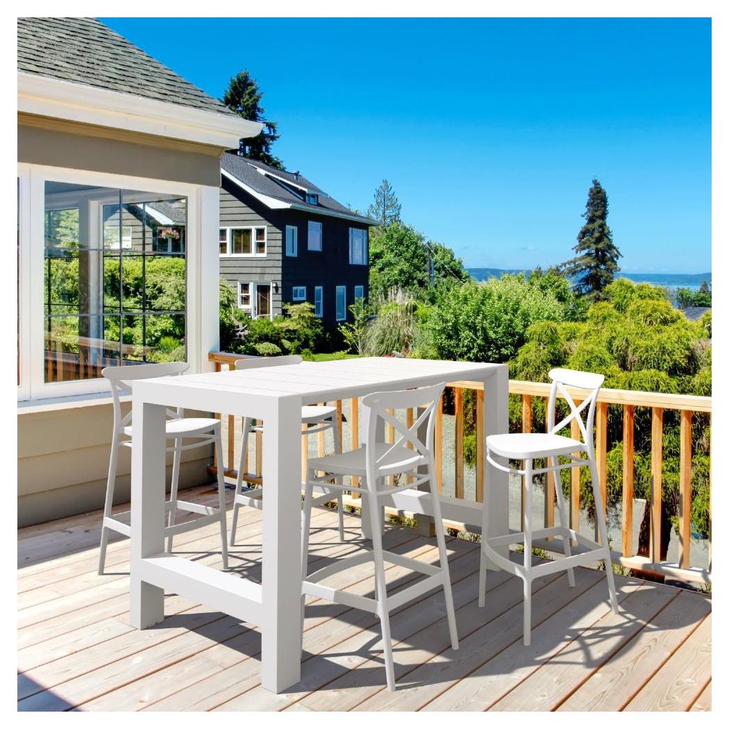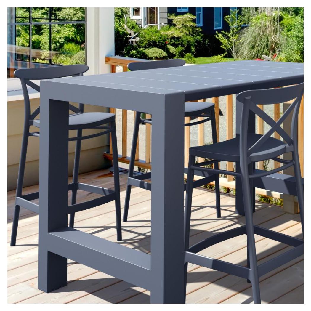 This set is designed for both outdoor and indoor spaces, offering a practical solution for elevated dining,