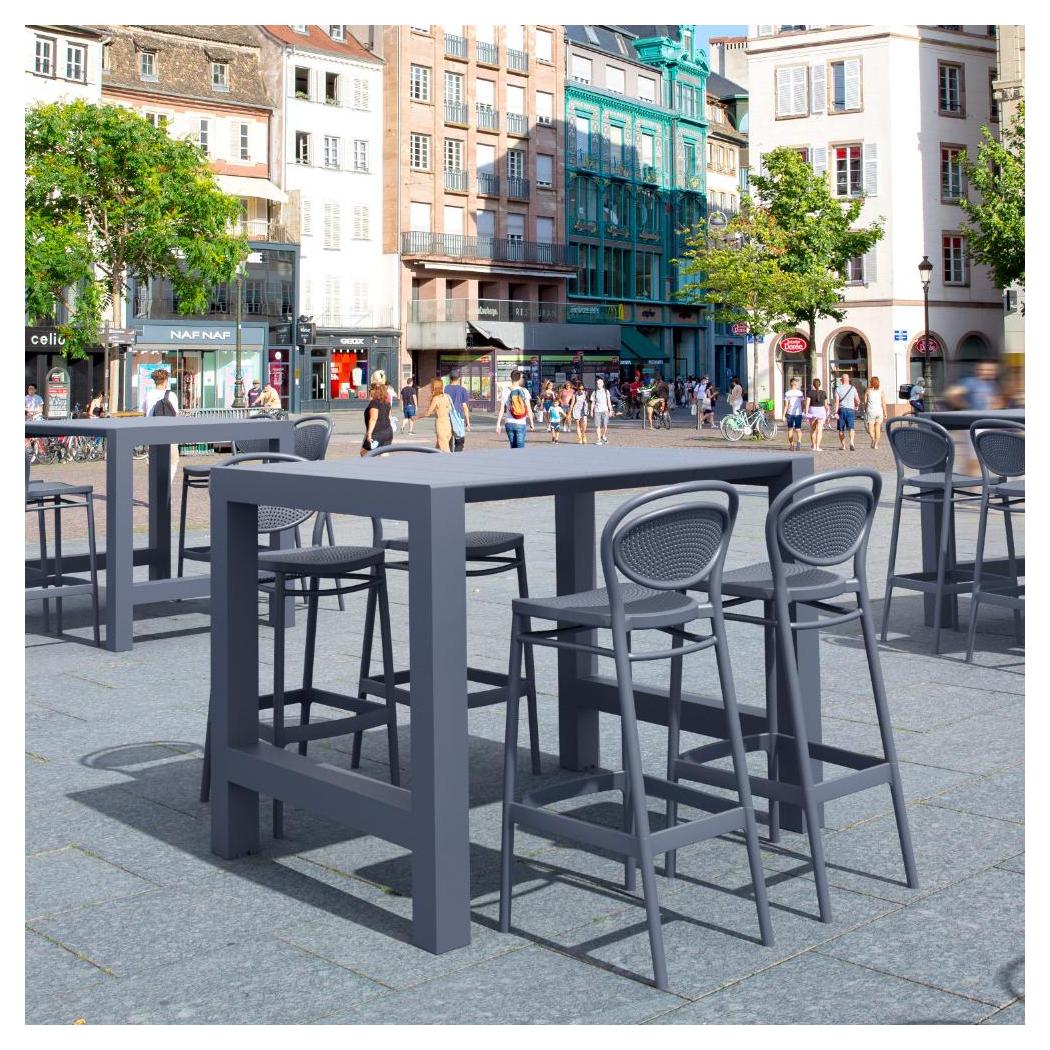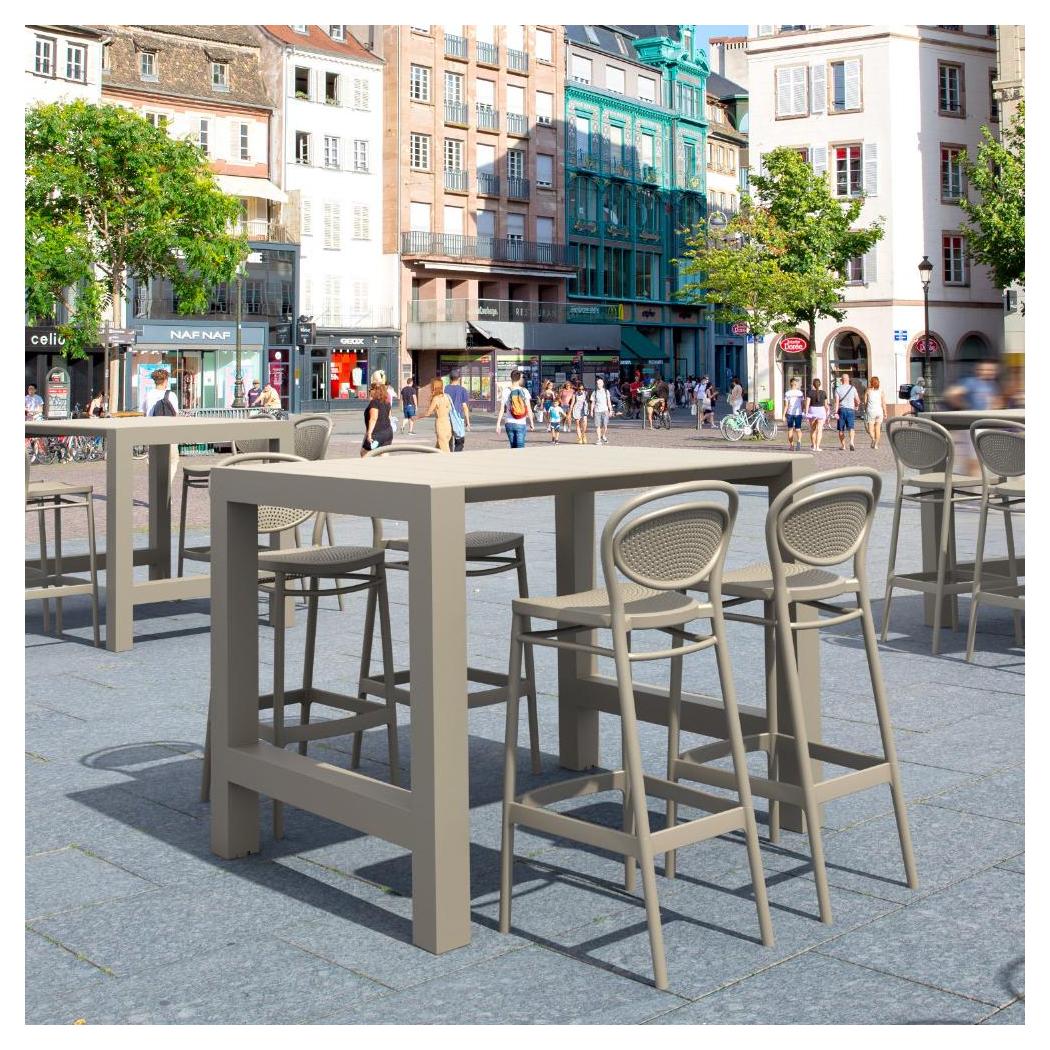 This bar furniture set is designed to accommodate up to four people, ideal for both outdoor and indoor spaces,