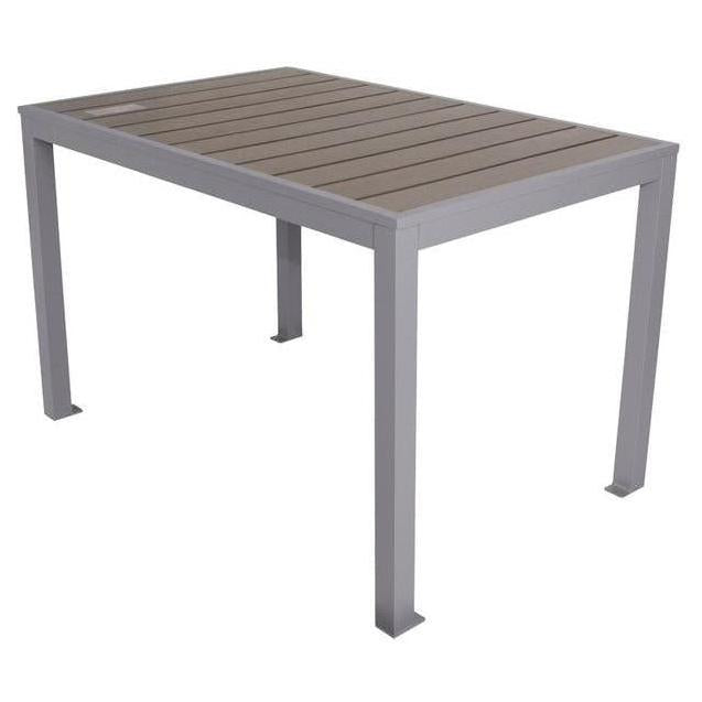– Structure / materials: Made of aluminum and synthetic wood, it ensures good weather resistance.