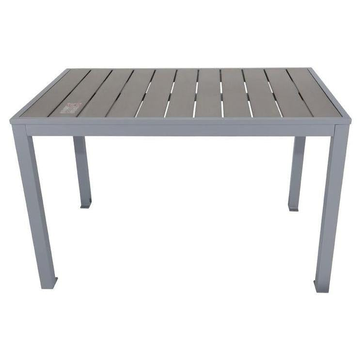 This outdoor bar table is designed for outdoor use, offering a modern and practical solution for dining or relaxation spaces.