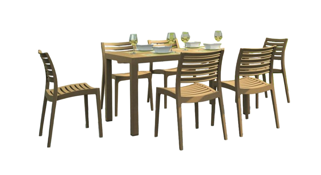 This outdoor dining set is designed for heavy commercial use,