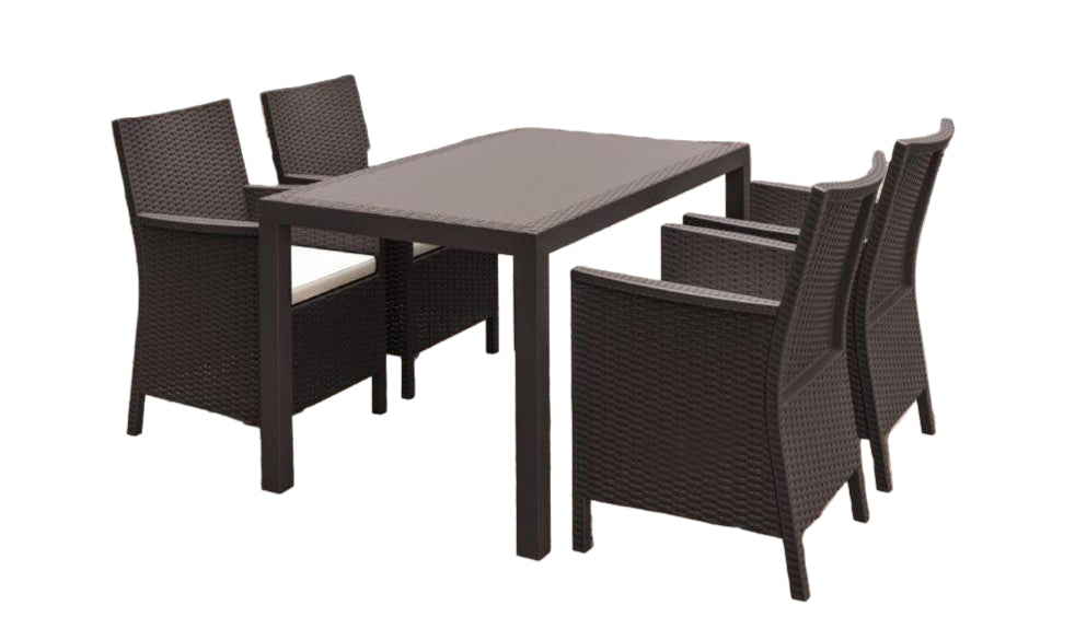 This outdoor dining set is designed to offer a practical and aesthetic solution for outdoor dining spaces,