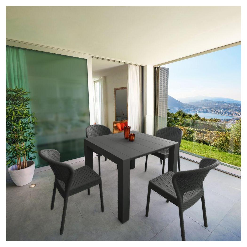 This outdoor dining set is designed to meet the needs of professional dining spaces,