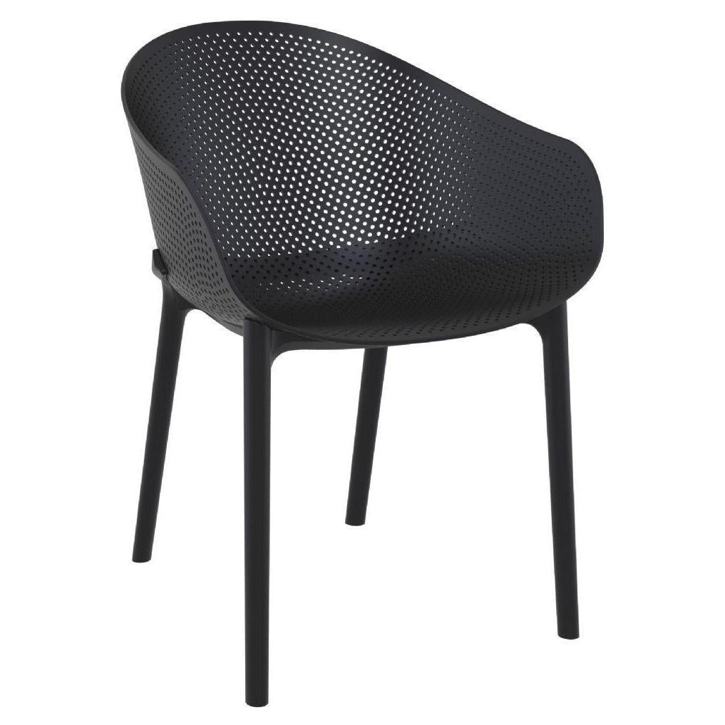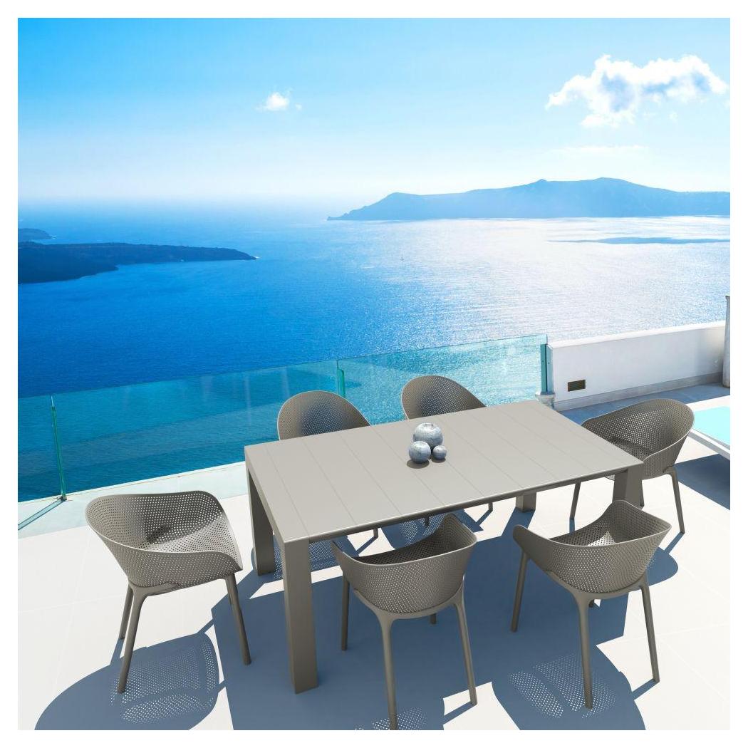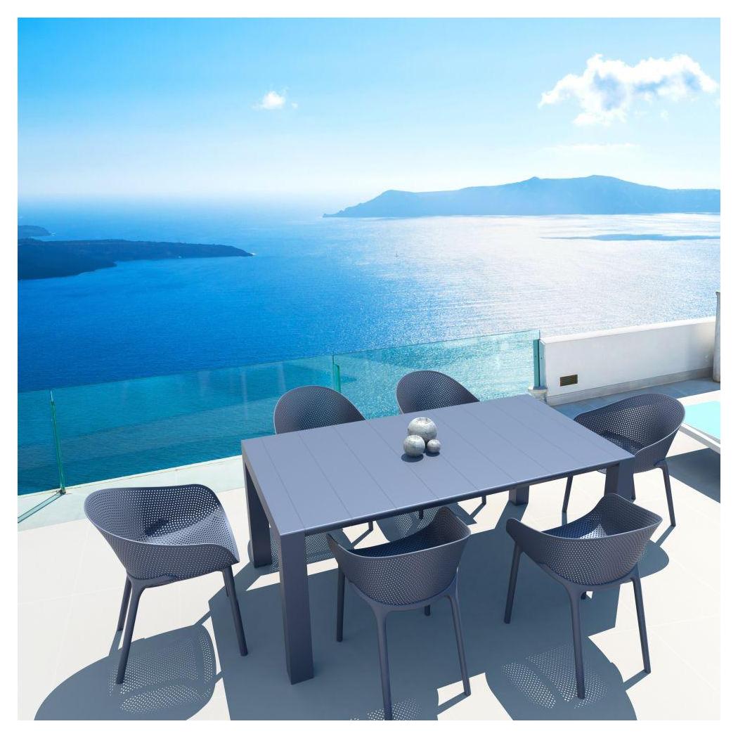 This outdoor dining set is designed to meet the needs of outdoor dining spaces,