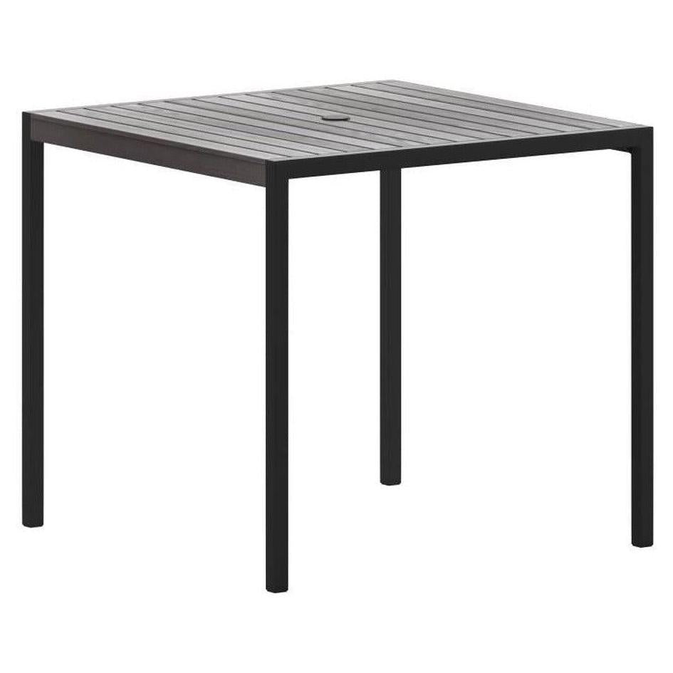 • Structure / materials: Its steel structure is covered with rust-resistant and weather-resistant epoxy paint, while the tabletop is made of gray washed teak imitation polyethylene slats,