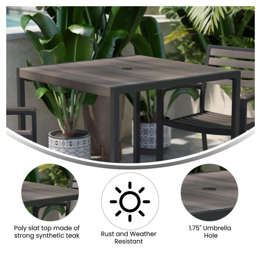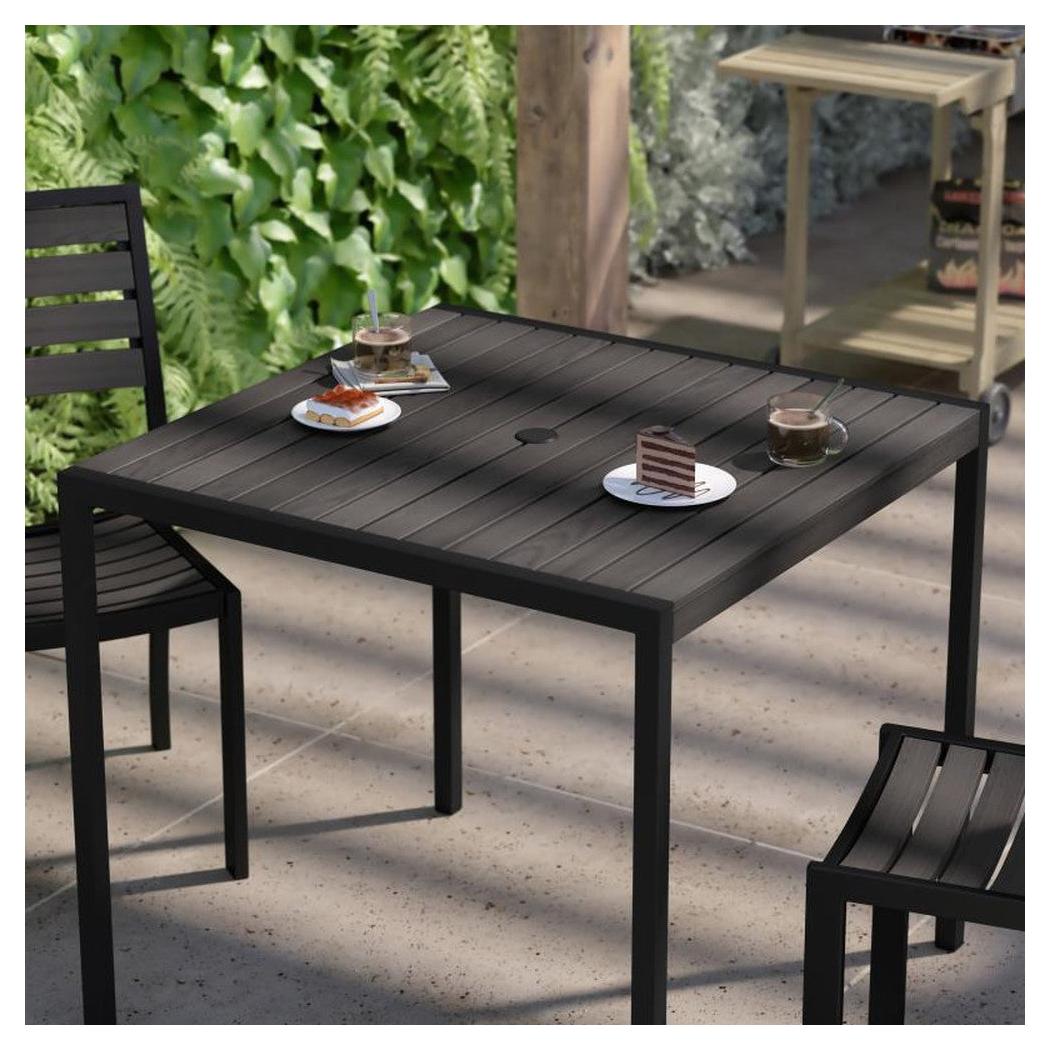 This outdoor dining table is designed for use in professional or domestic environments,