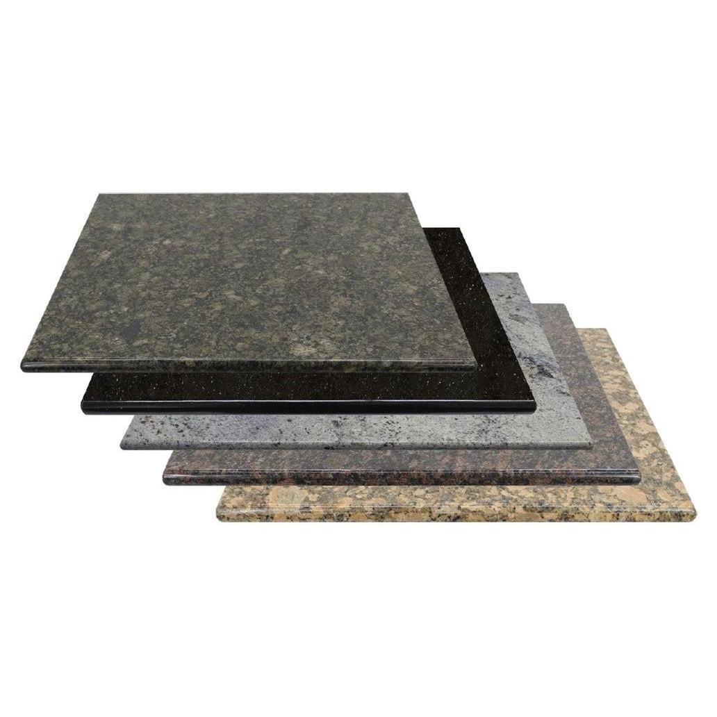 This granite table top is designed to bring a modern touch to your dining space,