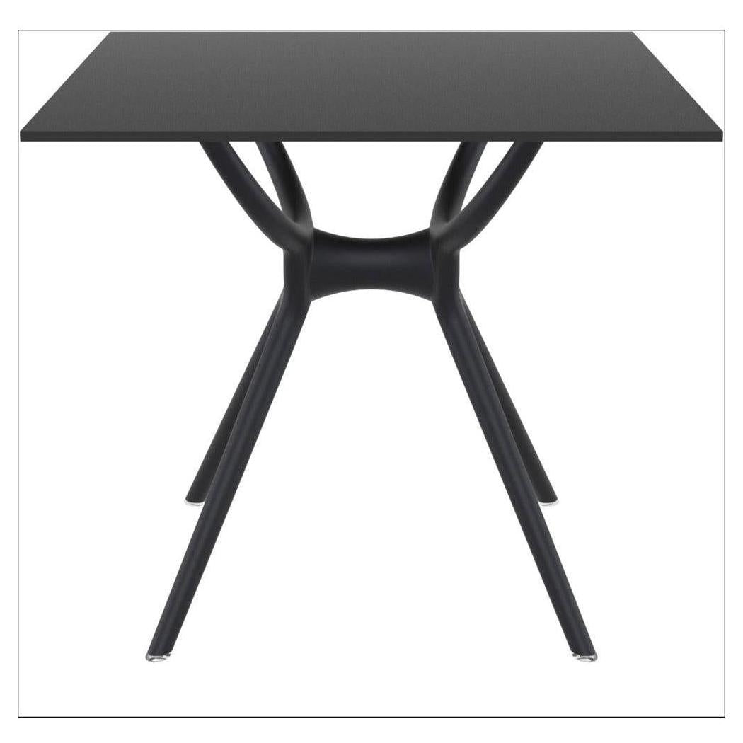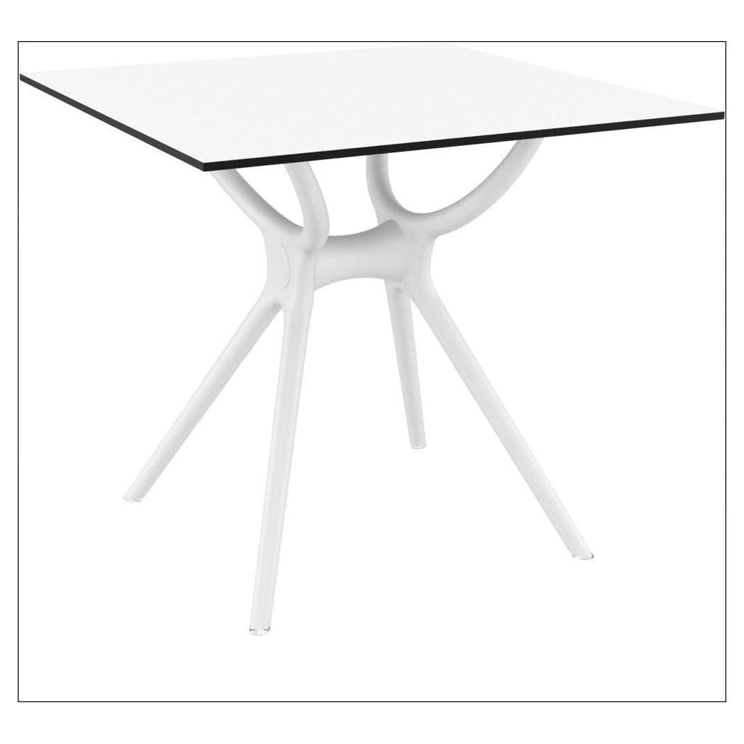 This square table is designed for commercial use, combining durability and modern aesthetics,