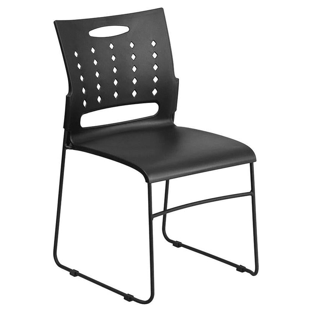 • Structure / materials: Its structure is made of metal with a sled base and a perforated plastic backrest for better air circulation,