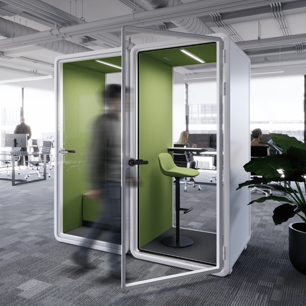 The Paddington ZUM-S acoustic booth is designed to provide a private and quiet workspace, ideal for modern offices.