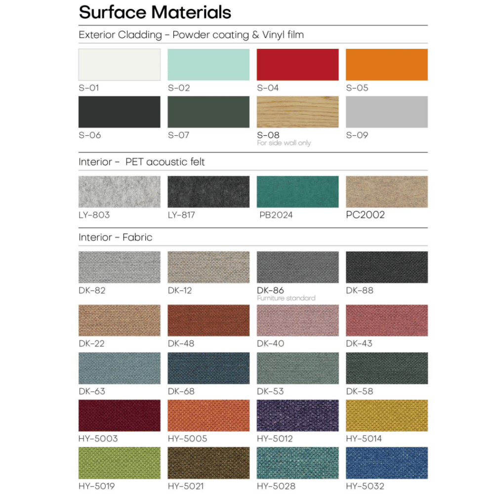 The booth offers a neat and contemporary finish, with customizable options to harmonize with your company’s visual identity. Its sturdy design ensures durability over time while maintaining a pleasant work environment.