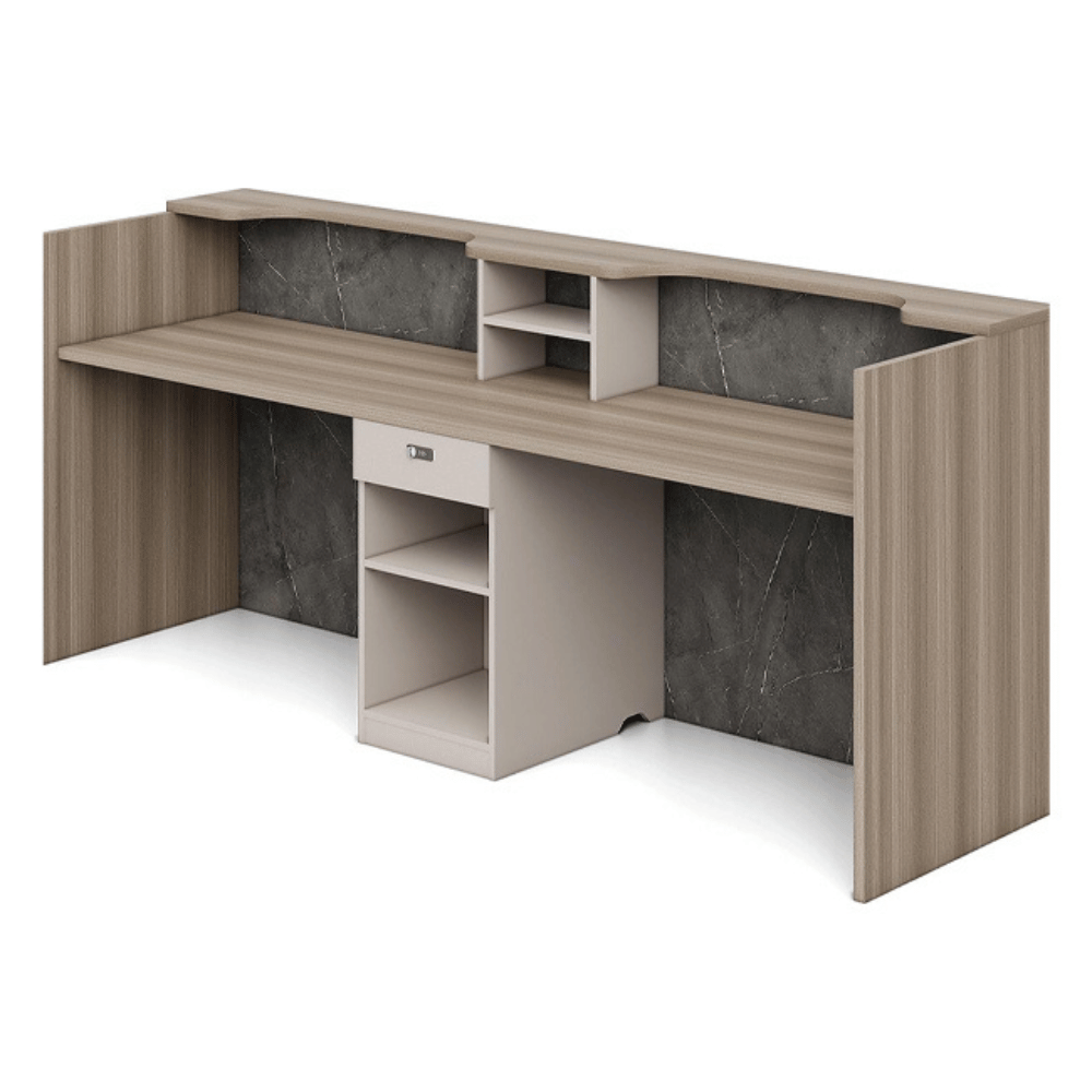 Ideal for reception areas, hotel lobbies, or coworking spaces, this counter combines practicality and elegance. Its design allows you to welcome your clients in a warm setting while facilitating the organization of your space. It fits perfectly in modern work environments and events.