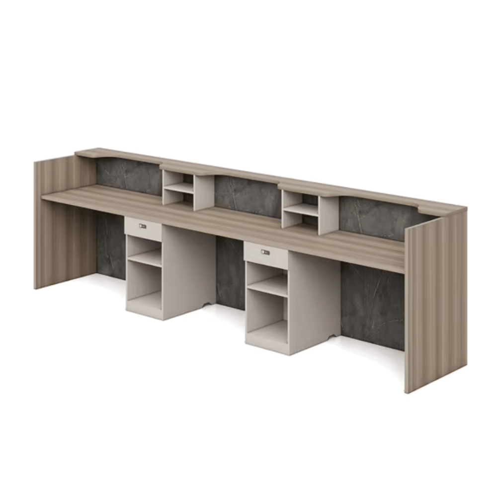**Savjo Wooden Reception Counter with Storage**