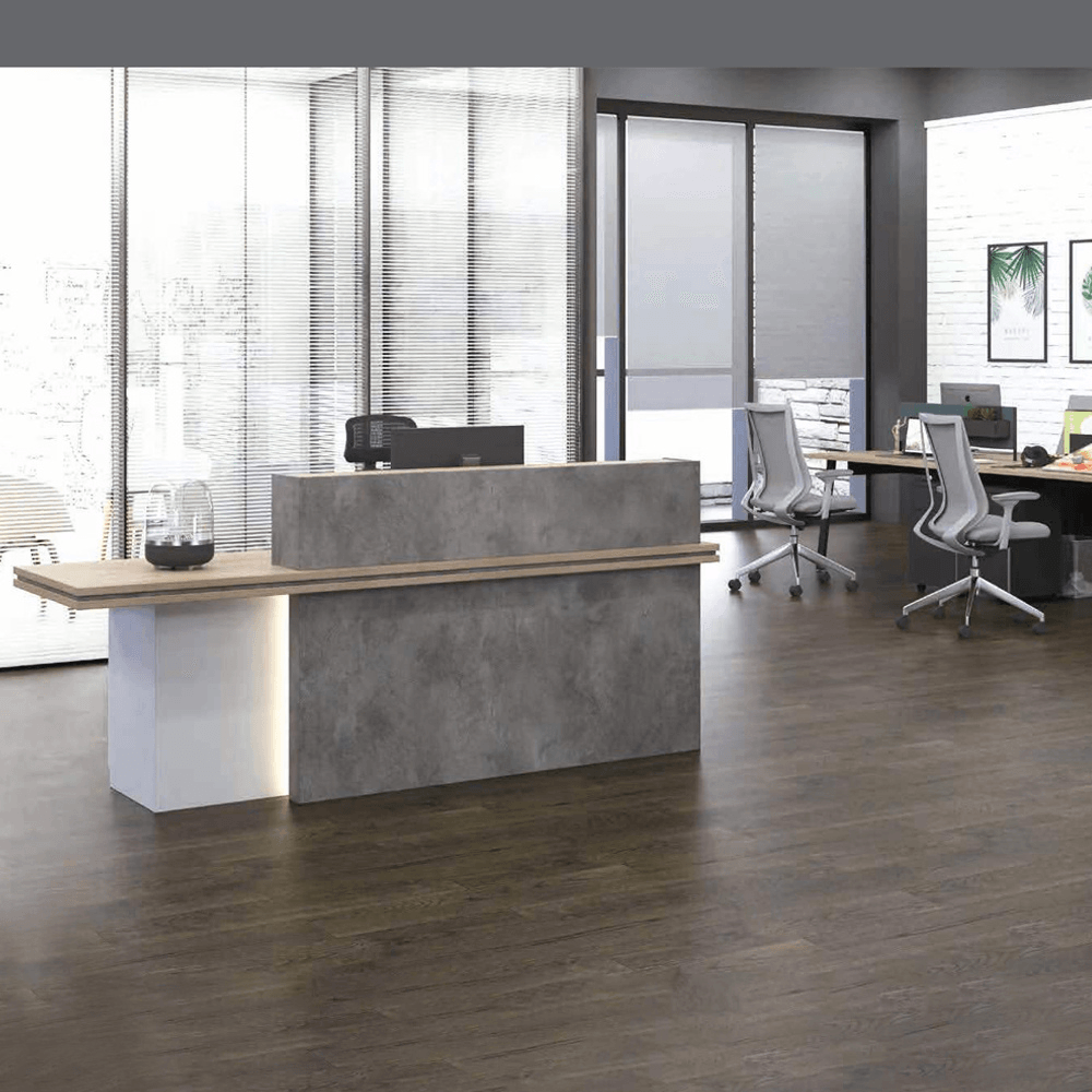 This counter is designed for hotel receptions, front office desks, and lounge areas. Its modern and refined design creates a welcoming atmosphere for your clients and visitors. It fits perfectly in professional environments where aesthetics and organization are paramount.