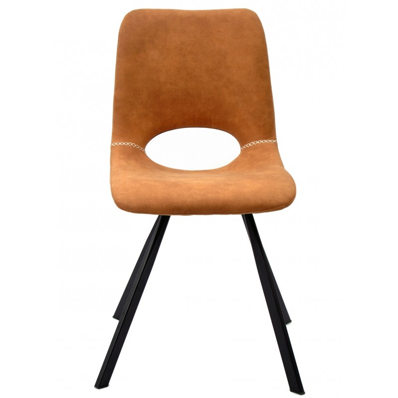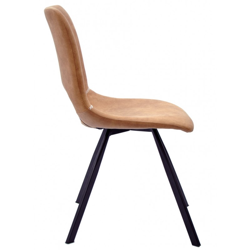 The metal structure provides excellent stability and high resistance to wear. The light brown faux leather covering adds a warm and easy-to-maintain finish. This choice of materials allows for prolonged use without significant alteration in appearance or comfort.