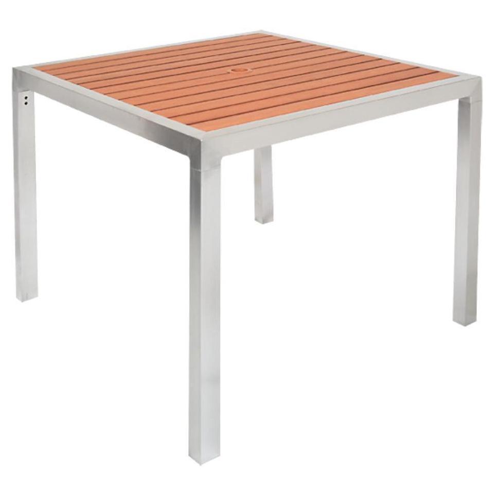 This square table is designed for outdoor use, ideal for dining spaces,