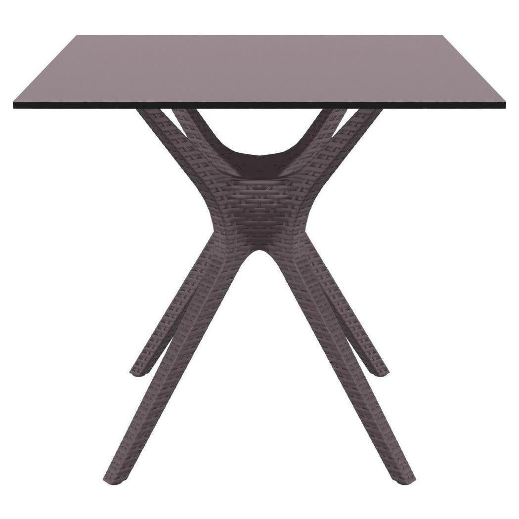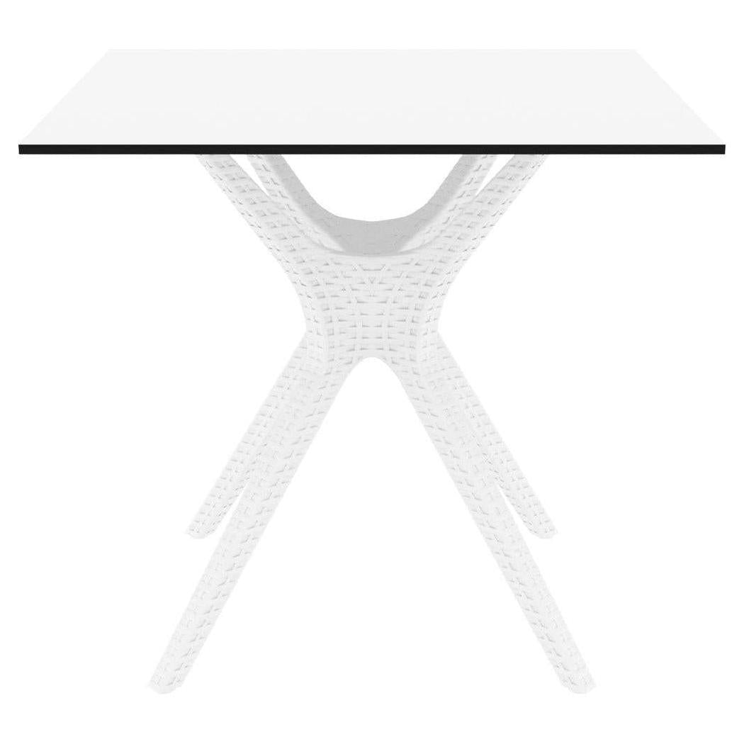 This square table is designed for professional use, ideal for both indoor and outdoor spaces.