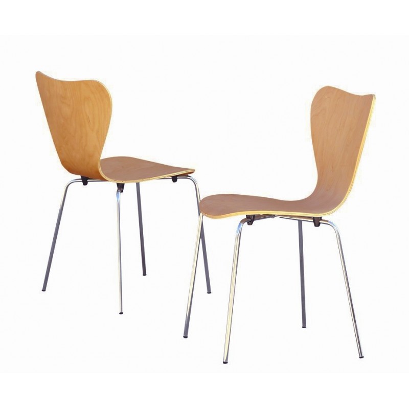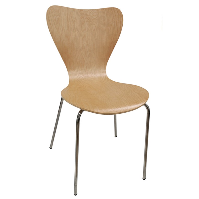 The base rests on a chrome tubular structure, ensuring strength and lightness. The seat is made of bent wood, with a natural finish that enhances the material. This combination ensures good durability while maintaining a sleek and contemporary aesthetic.