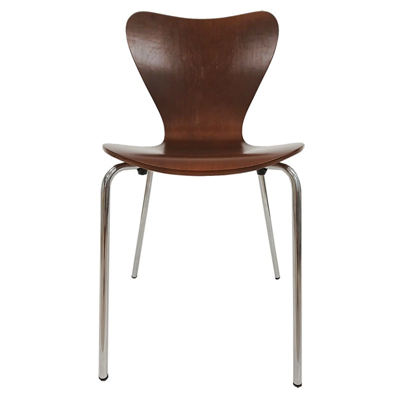 The chrome plating of the structure offers a smooth, wear-resistant, and easy-to-maintain surface. The walnut finish of the seat highlights the natural wood grain, ensuring a visually pleasing uniformity. The chair combines durability and discreet elegance to blend with various styles of decor.