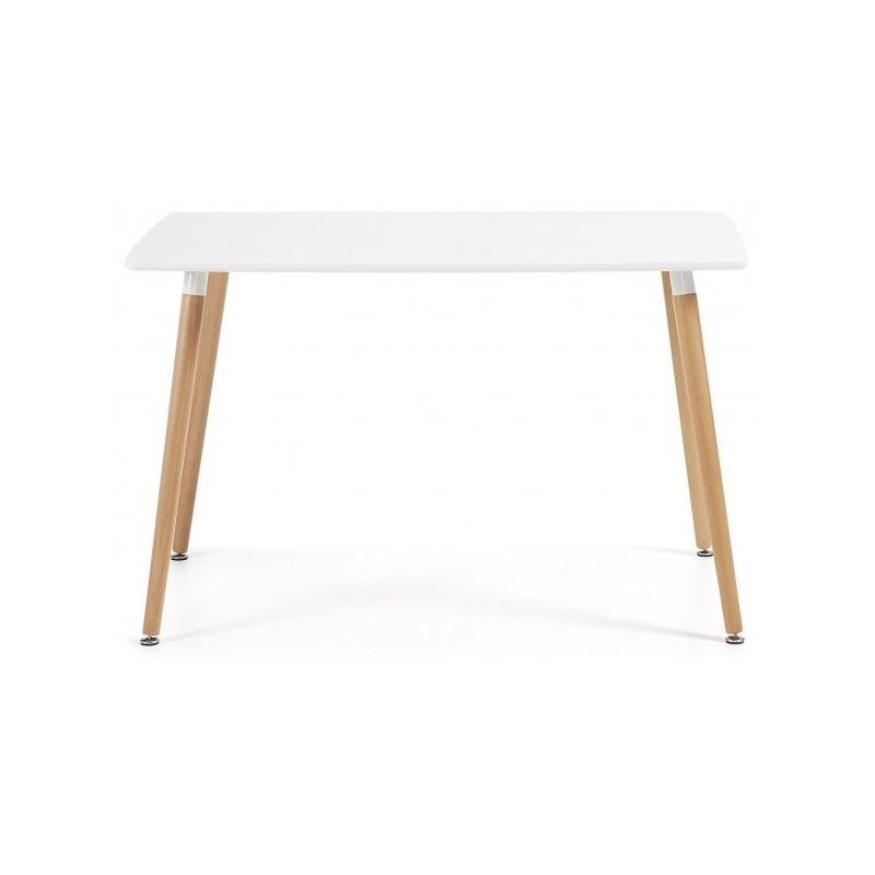 Four solid wood legs of the Slib type ensure lasting robustness. The white lacquered wood top provides a smooth and easy-to-maintain surface. A metal frame reinforces the stability of the whole. The table is available in other colors, allowing for customization according to the desired ambiance.
