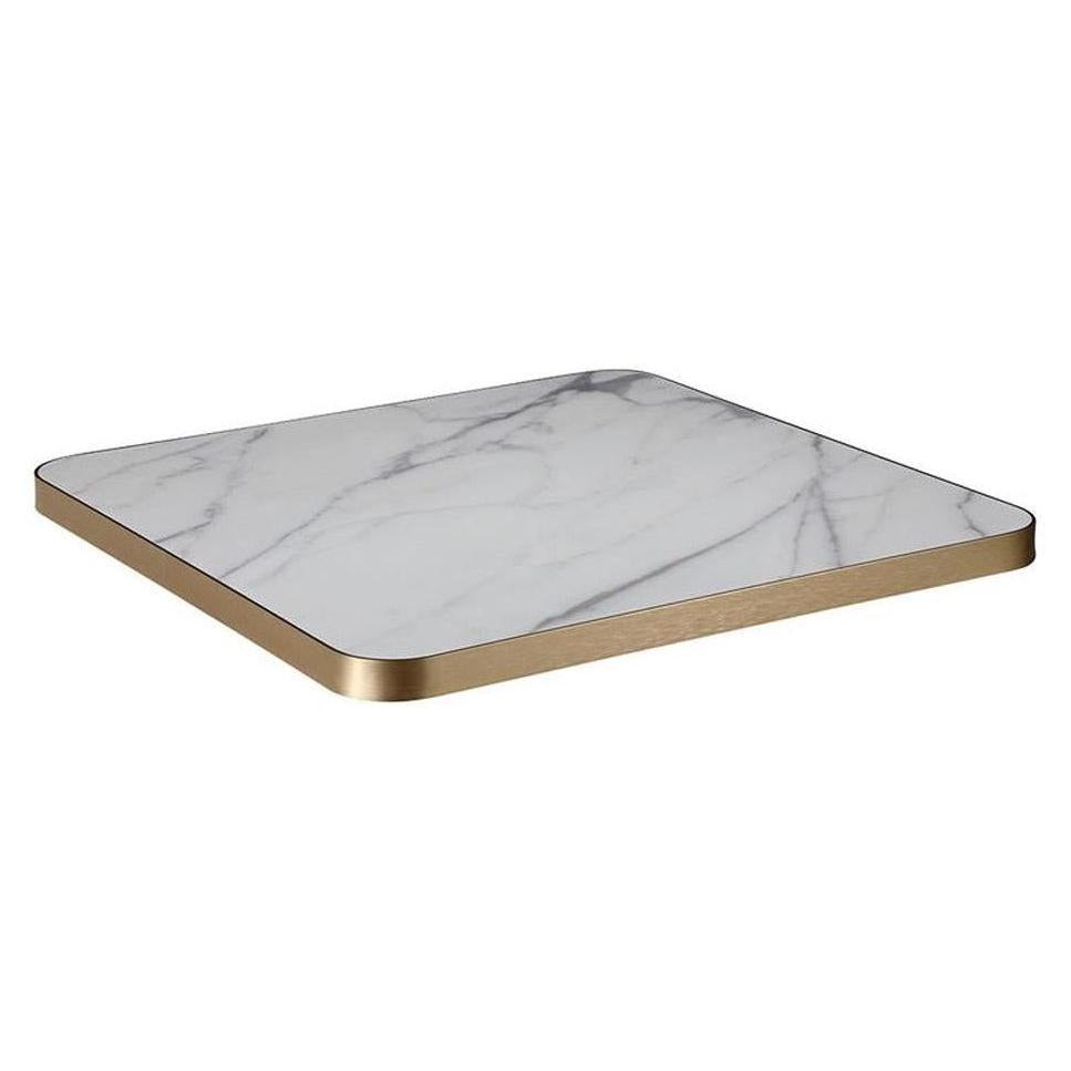 This marbled sintered stone table top is designed for professional use, combining aesthetics and robustness. – Use / destination: Suitable for restaurant environments, both indoors and outdoors. – Structure / materials: Made of sintered stone with a bronze-colored aluminum edge. – Key technical points: Its durable design allows it to withstand intensive use while maintaining […]