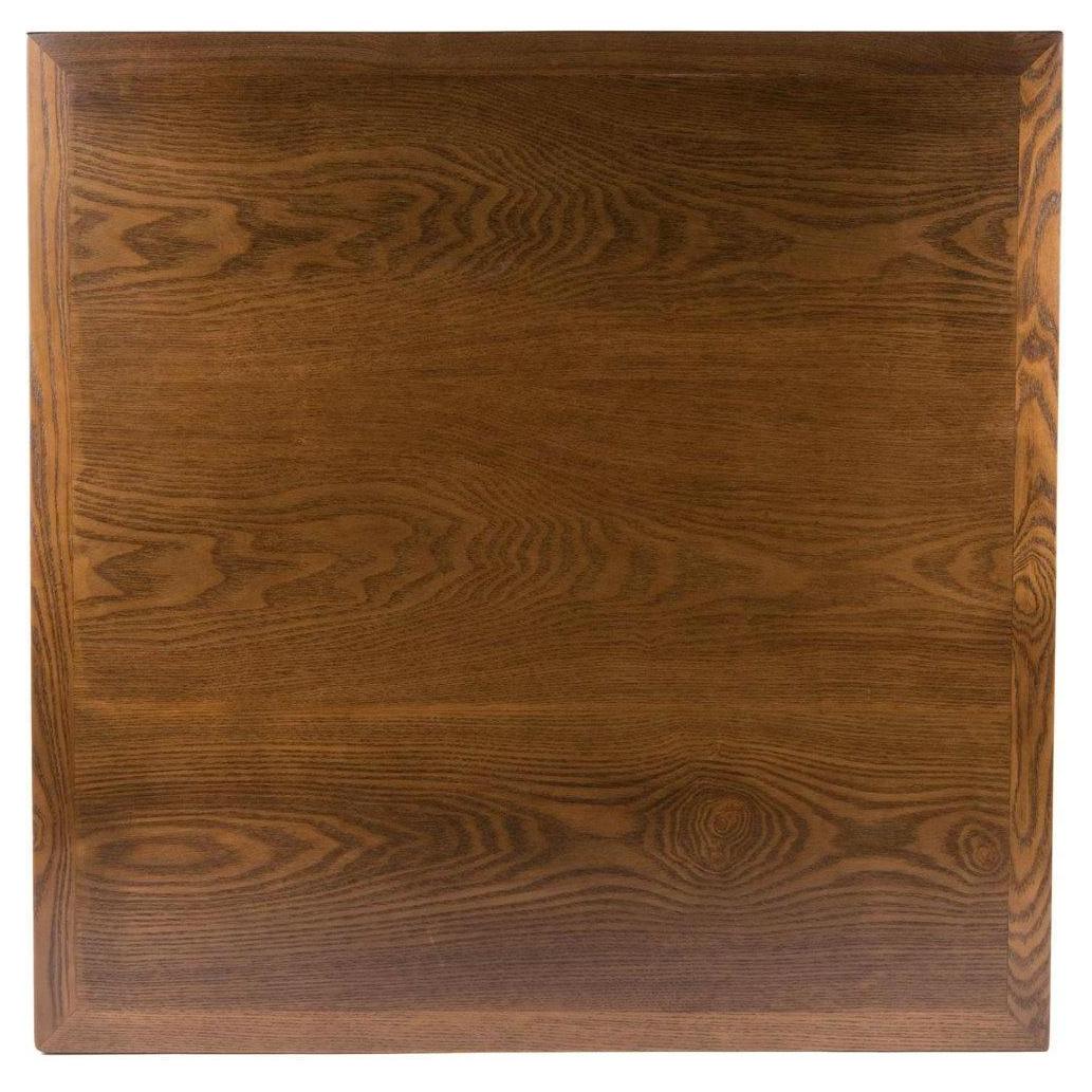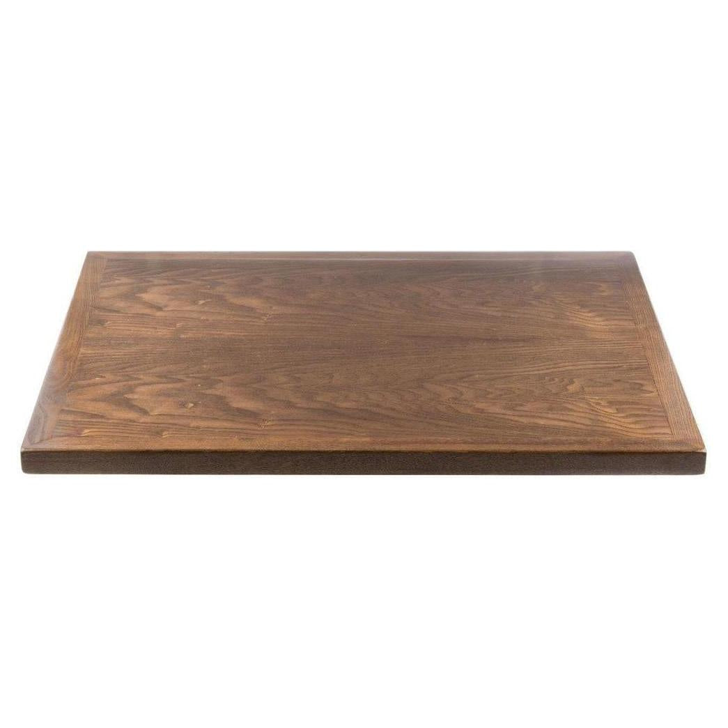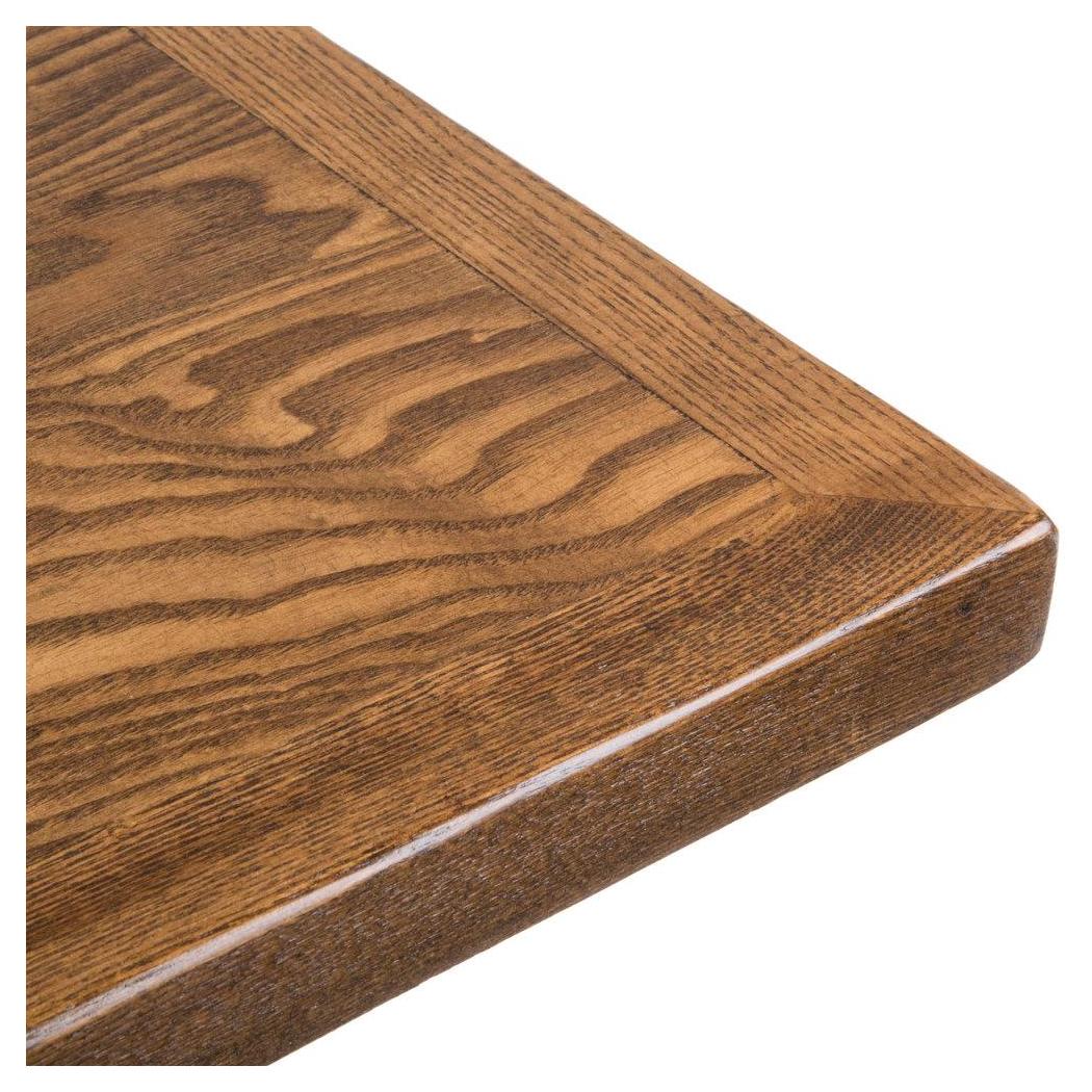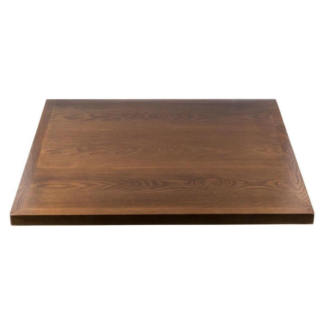 These wood veneer table tops are designed for commercial use, offering a traditional aesthetic suitable for dining environments,