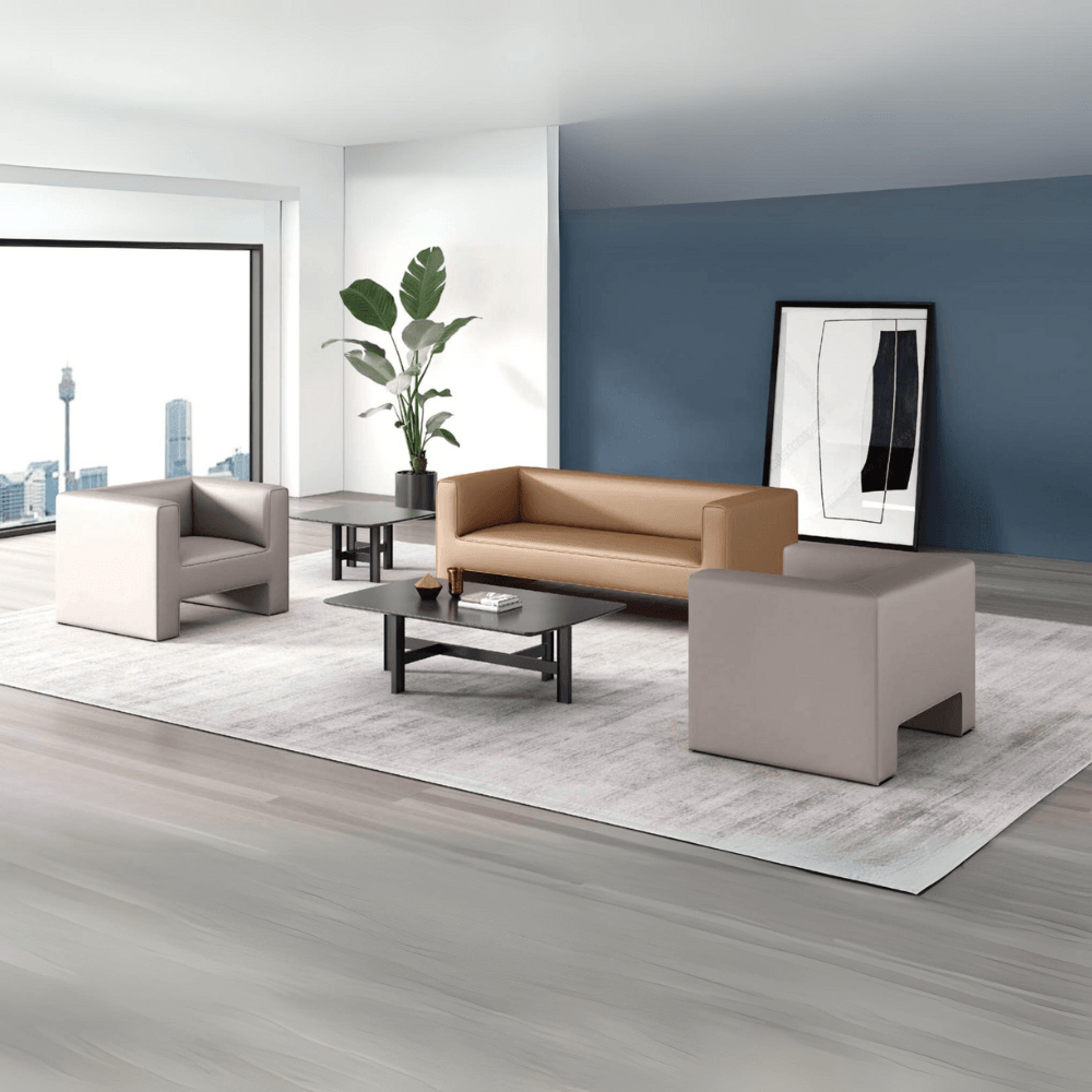 The Gong three-seater lounge sofa is designed to provide comfort and elegance in professional spaces.