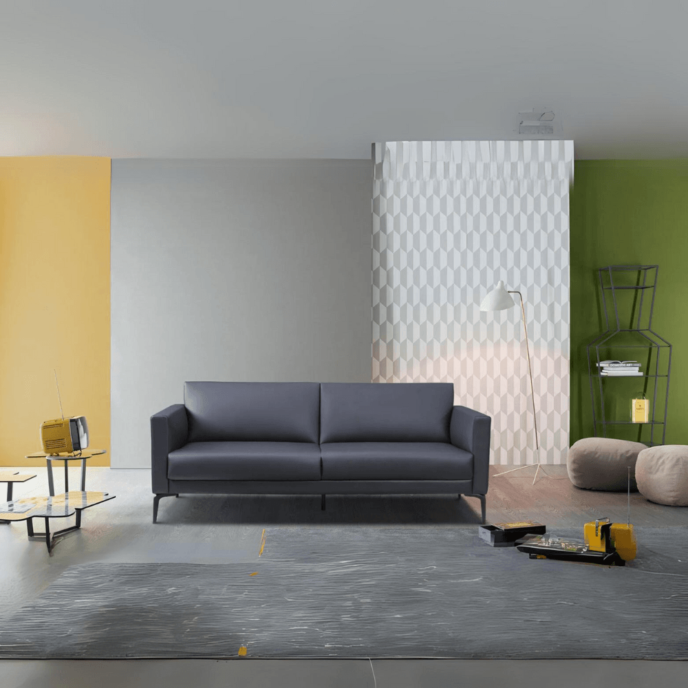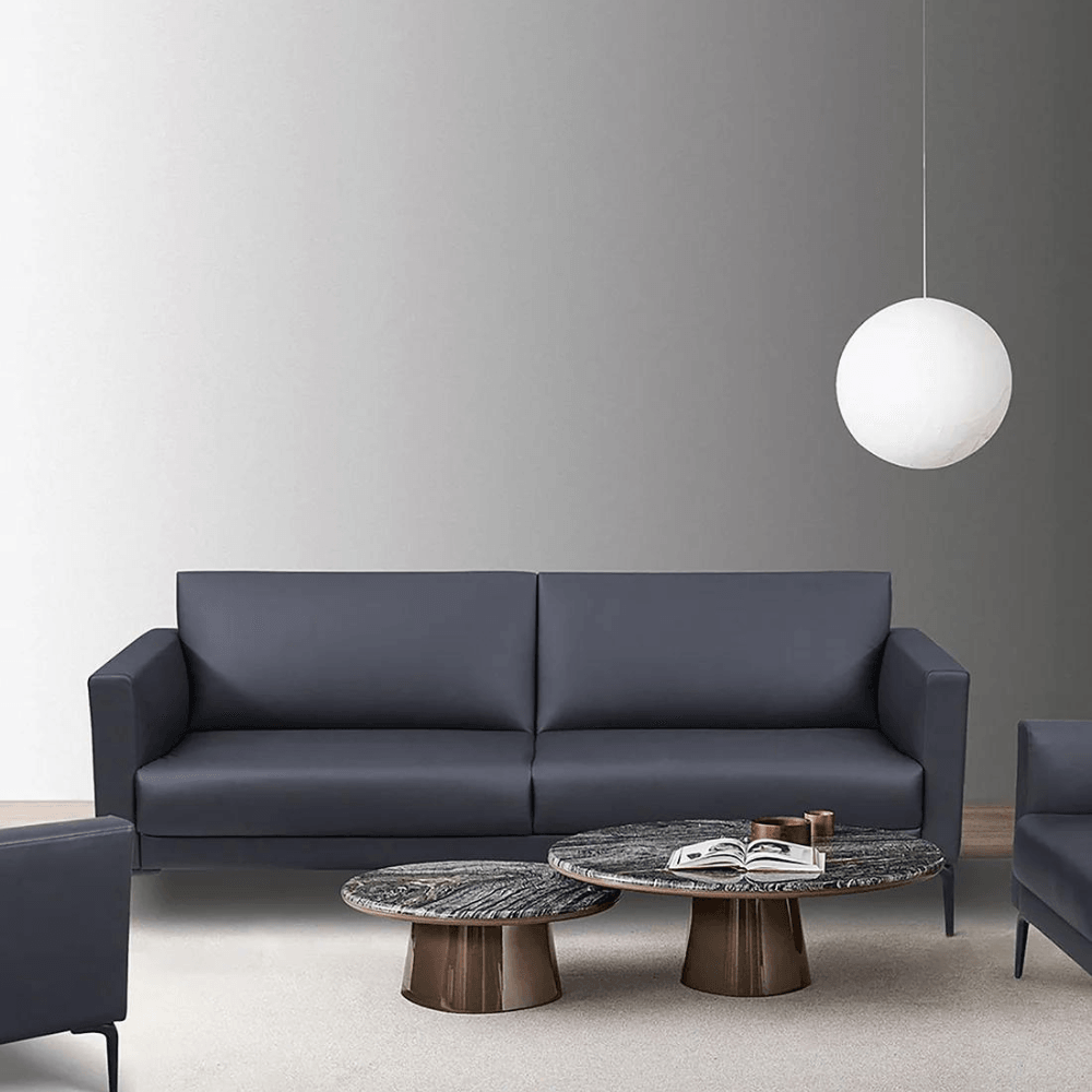 This sofa is upholstered in high-quality leather imported from Brazil, ensuring a luxurious aesthetic and increased durability. Its steel base with epoxy finish ensures stability and long-lasting resistance. The 40 kg/m³ high elasticity foam padding offers optimal comfort.