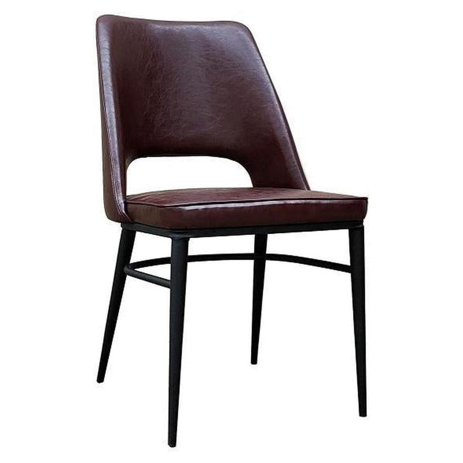 Vintage black steel chaise with dark brown vinyl seat