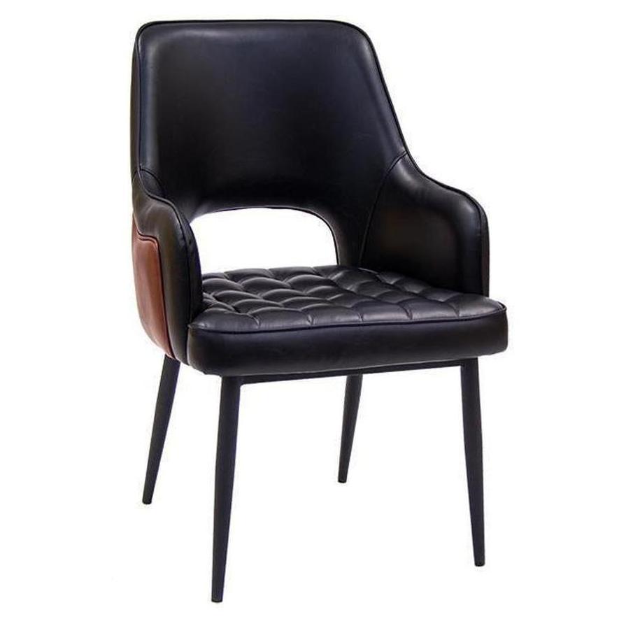 Vintage black steel lounge chair with vinyl seat