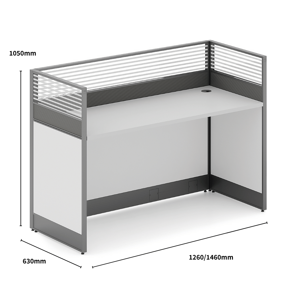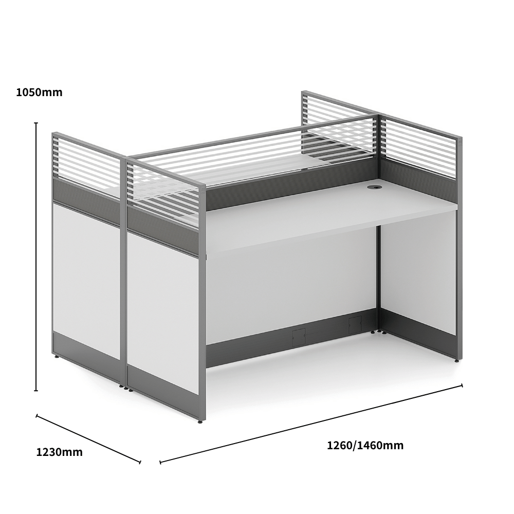 Ideal for offices, this layout promotes concentration and collaboration. Its modern design fits perfectly in professional environments such as coworking spaces, reception areas, or lounge zones. The partition allows for creating distinct work areas while maintaining an open ambiance.