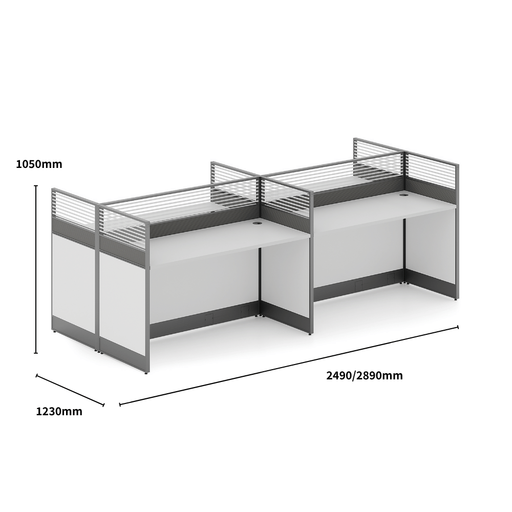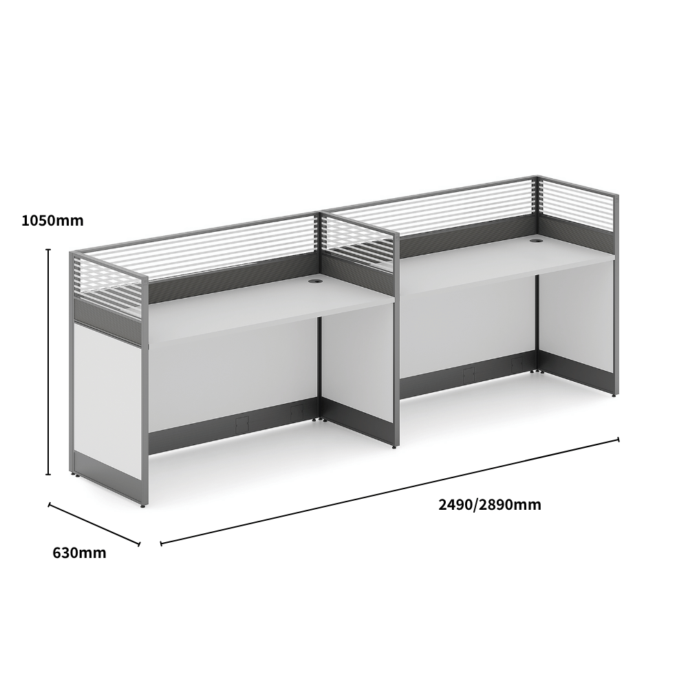 This workstation is designed to optimize workspace while providing effective separation between users.