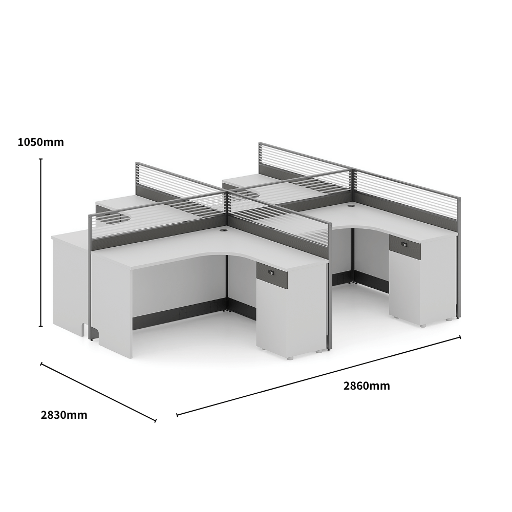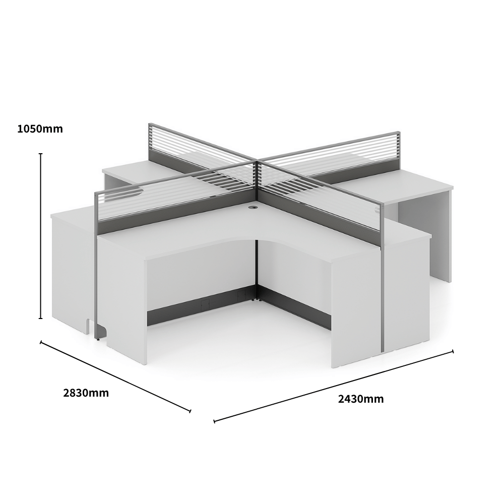 This workstation fits perfectly in modern office environments, promoting collaboration and focus. Ideal for coworking spaces, corporate offices, or reception areas, it provides a functional and aesthetic setting. The partition allows for creating private areas while maintaining an open atmosphere.