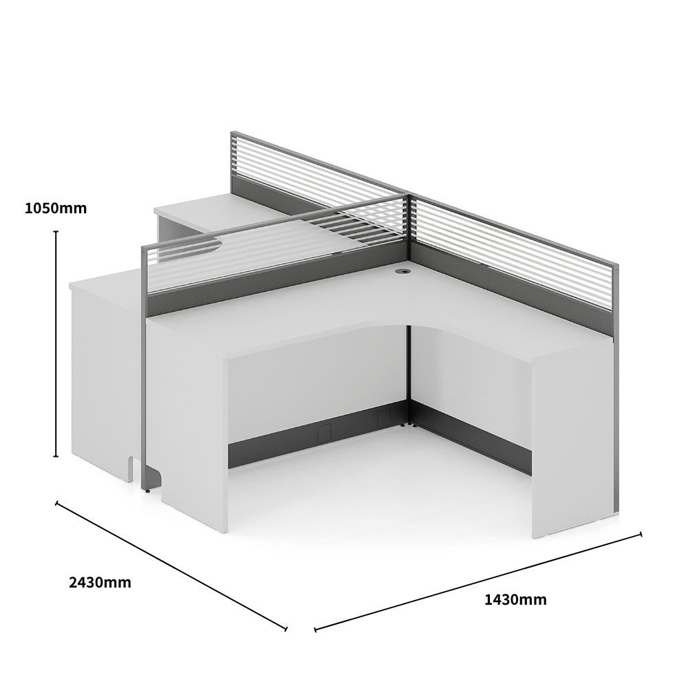 The desk features a 25mm thick top made with high-quality veneer imported from Germany, ensuring durability and elegance. The partition consists of three sections of tempered glass, offering visual separation while allowing light to pass through.