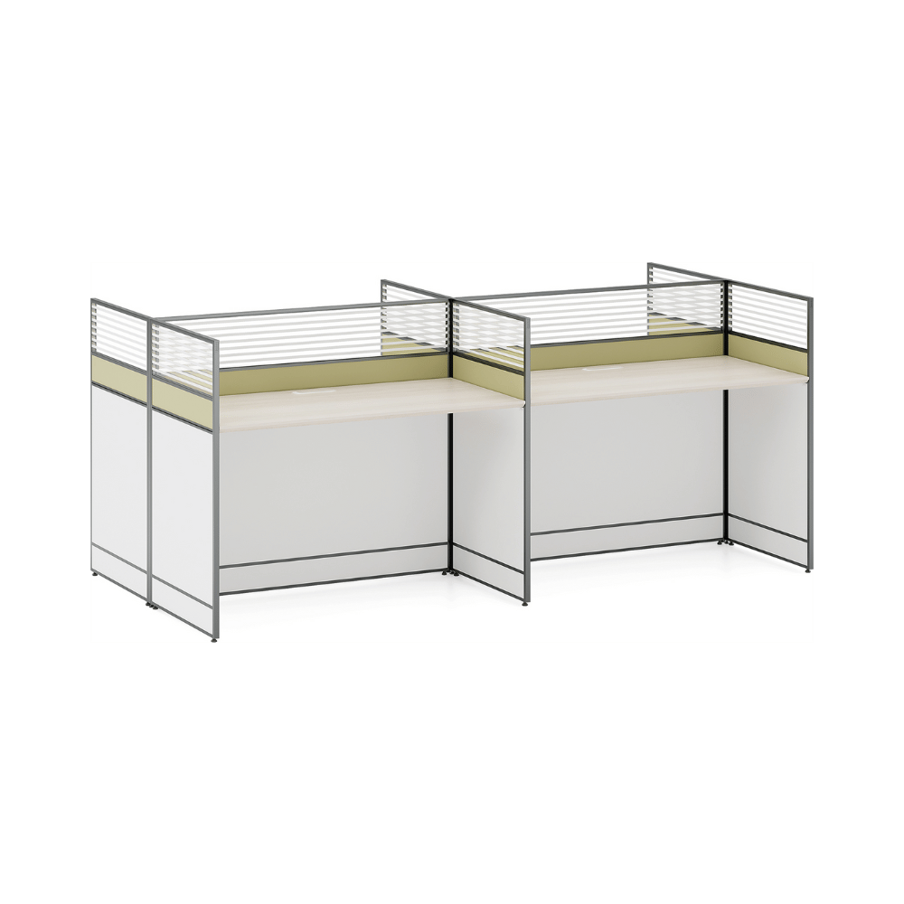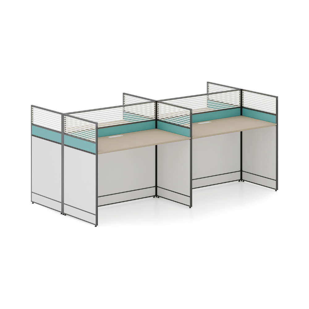Ideal for offices, this workstation fits perfectly in professional environments such as coworking spaces, reception areas, or lounge zones. Its partition promotes concentration and privacy while allowing smooth circulation in the space. It is a smart choice for companies looking to set up collaborative or individual spaces.