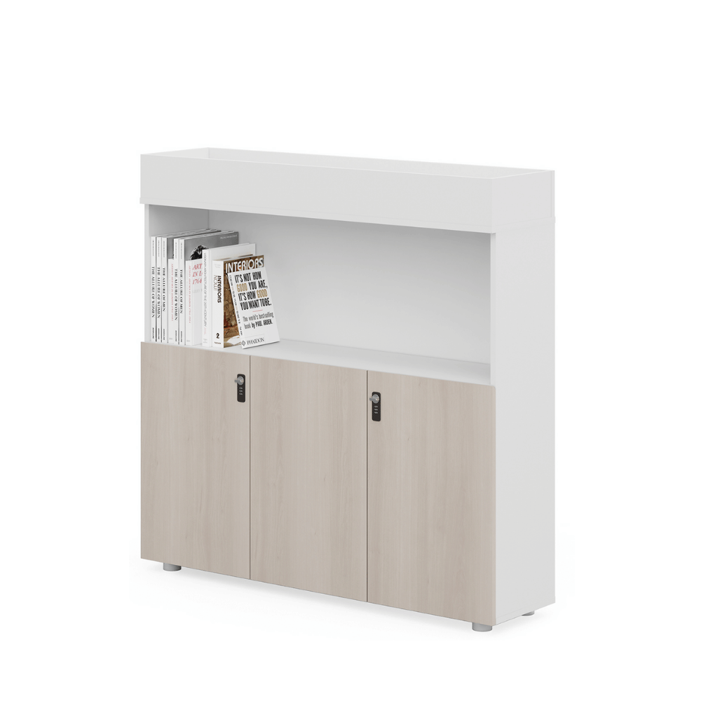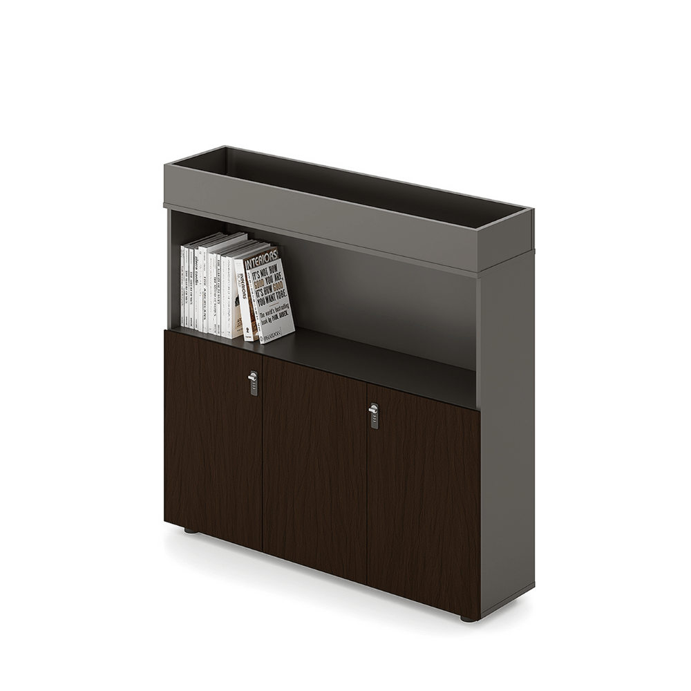 Ideal para espacios de trabajo, oficinas, así como áreas de recepción y salas de estar, este armario ofrece una solución de almacenamiento funcional y elegante. Su diseño moderno se integra perfectamente en entornos como hoteles, restaurantes o salas de reuniones. La bandeja vegetal agrega una dimensión natural, contribuyendo a un ambiente relajante.
