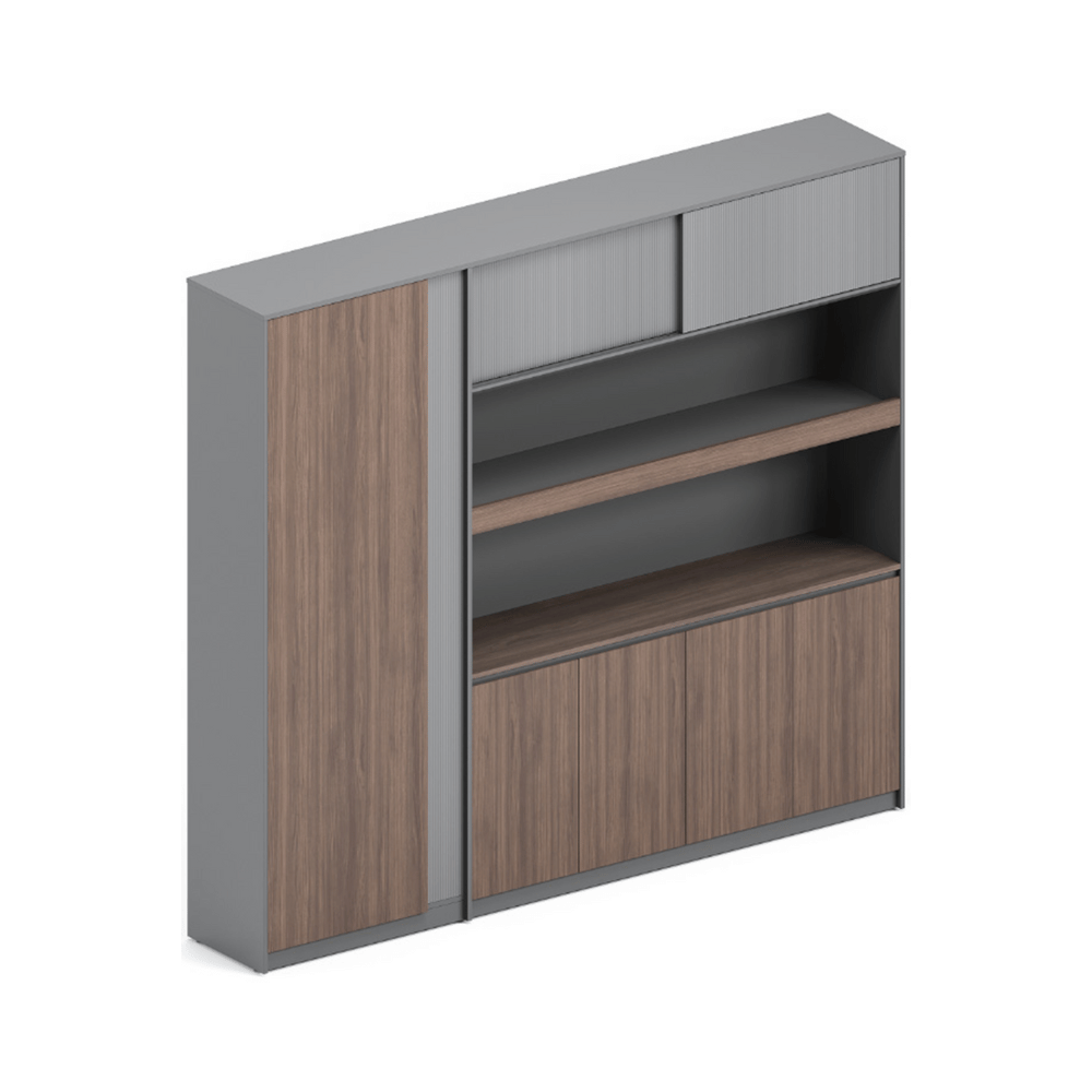 Diseñada para entornos laborales, esta biblioteca se integra perfectamente en oficinas, vestíbulos o espacios lounge. Ofrece un amplio espacio de almacenamiento para organizar libros, documentos y objetos decorativos. Su diseño limpio contribuye a crear un ambiente profesional y acogedor.
