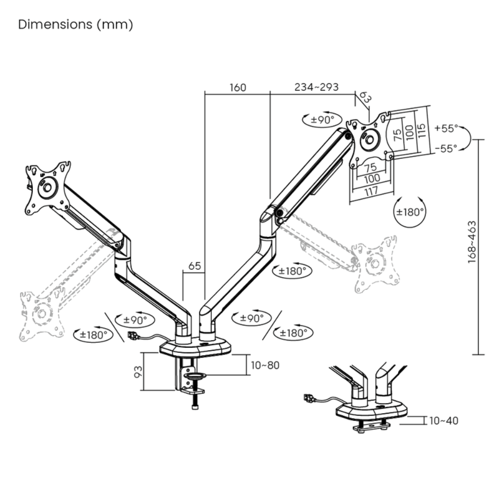 – Soporta la mayoría de monitores de 17” a 32” hasta 9 kg por brazo