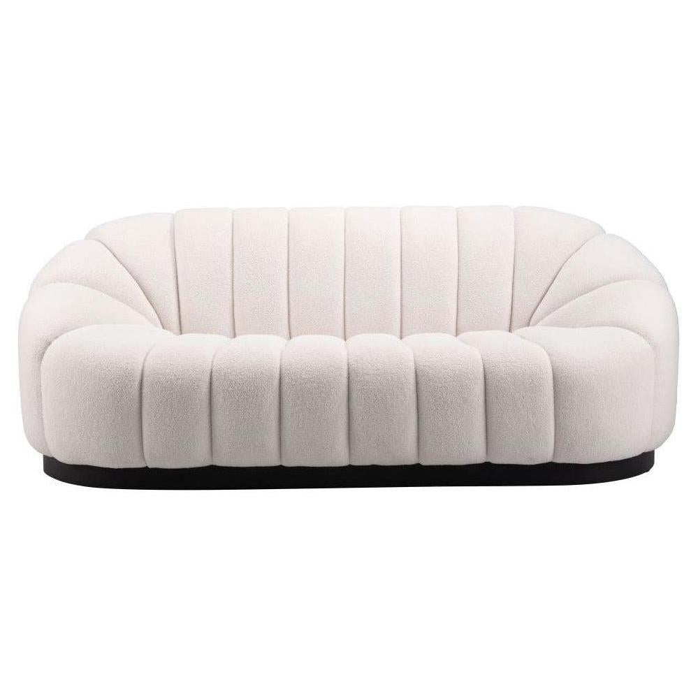 • Estructura / materiales: Fabricado en tela bouclé 100 % poliéster, contrachapado y acero recubierto de polvo,