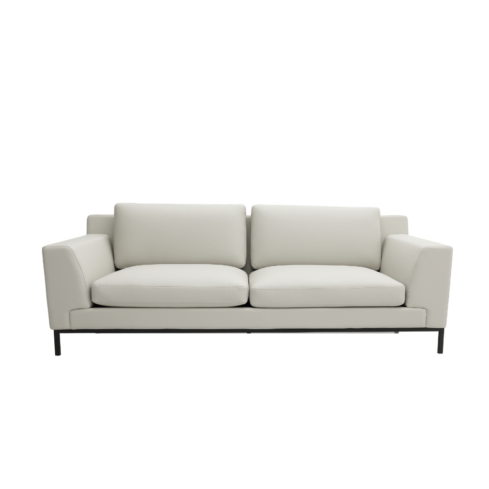 Su estructura está hecha de madera de alerce importada, garantizando estabilidad y durabilidad. El relleno de espuma de poliuretano moldeada ofrece una comodidad óptima, manteniendo su forma con el tiempo. Las patas de metal pintado añaden un toque contemporáneo y aseguran una robustez apreciable.